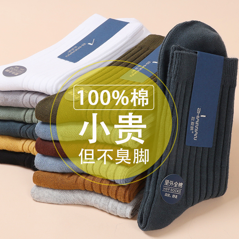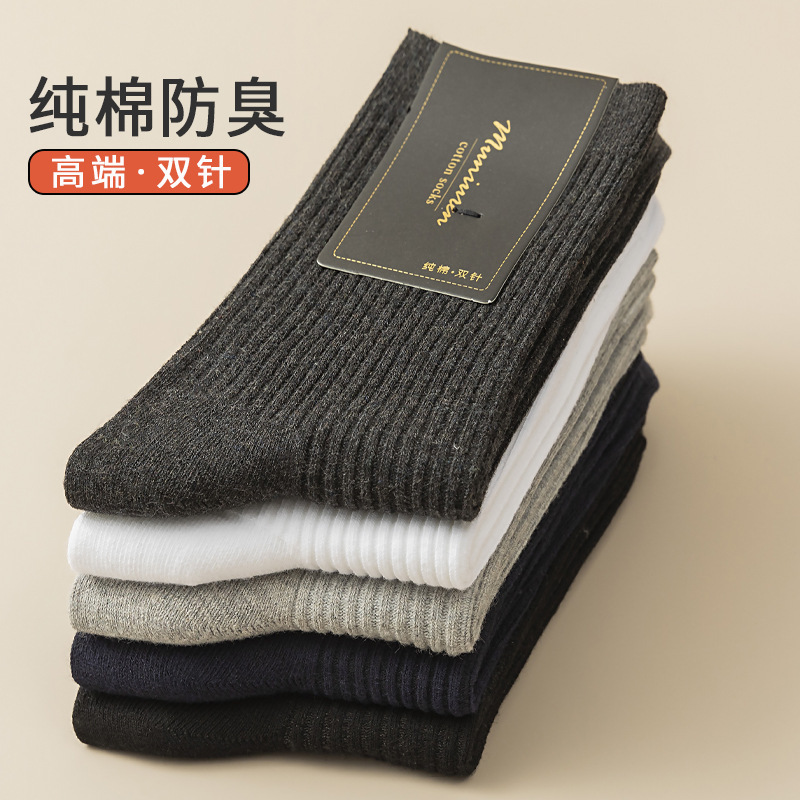 靴下男性秋冬純綿中筒靴下双針縦条男性カジュアルビジネス綿靴下ストッキング純色百合潮