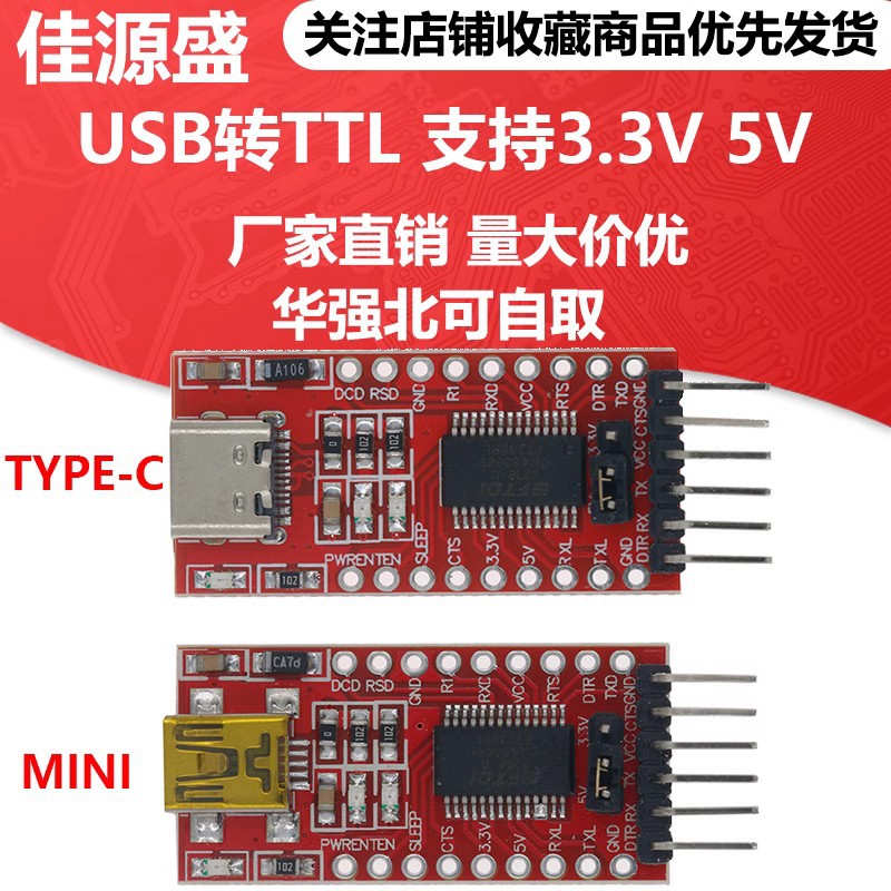 ·引出FT232RL芯片全部信号端口,TTL/CMOS电平;