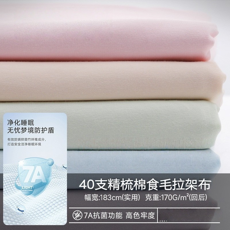 【现货】40支精梳棉食毛拉架 抗菌针织布料平纹拉架布T恤睡衣面料