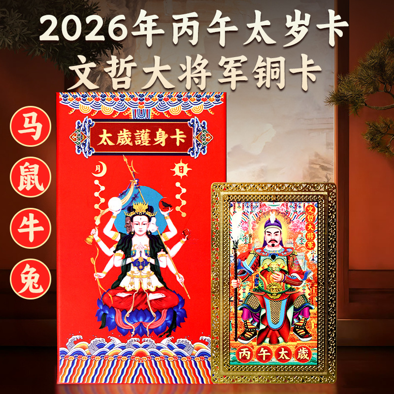 批发2026丙午马年 铜制太岁金卡 摩利支天/文哲大将军随身卡片