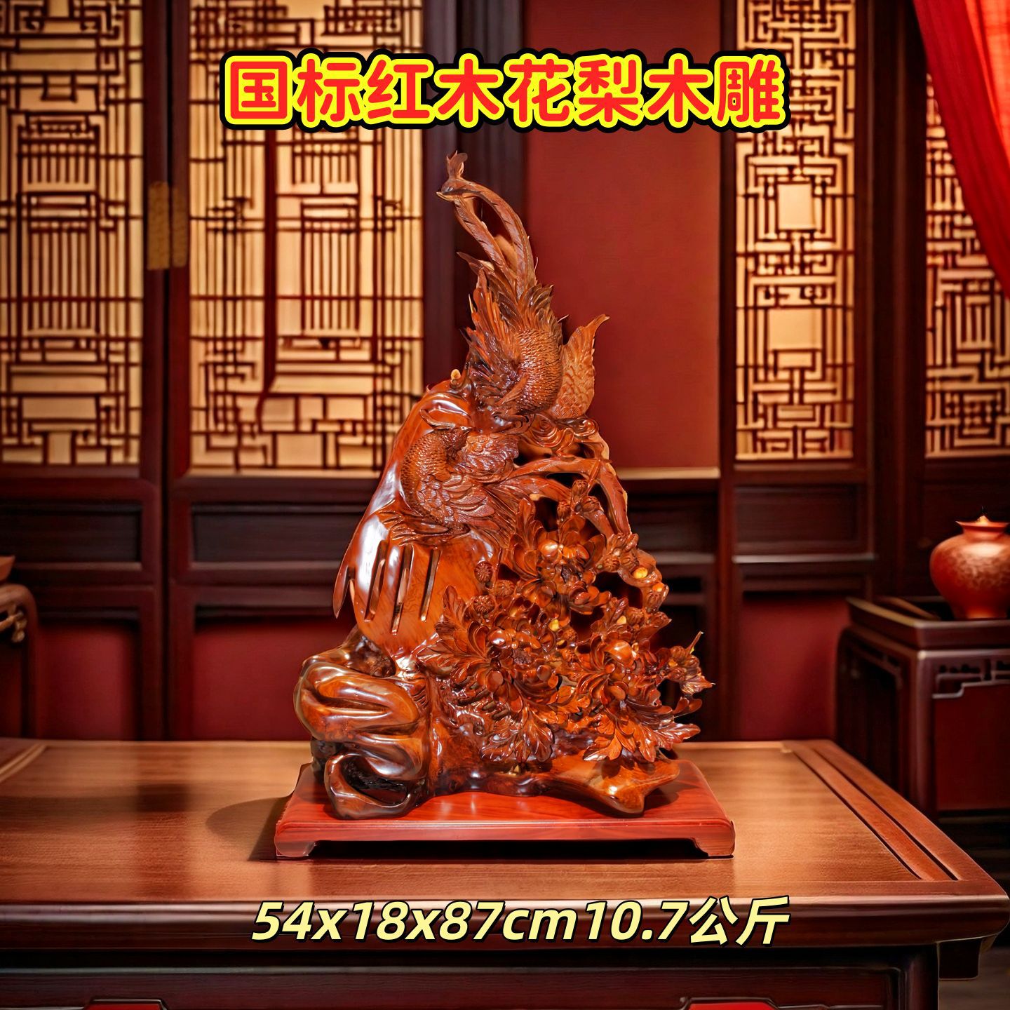 新年红木雕花鸟摆件乔迁送礼吉祥工艺品缅甸花梨木根雕双喜临门