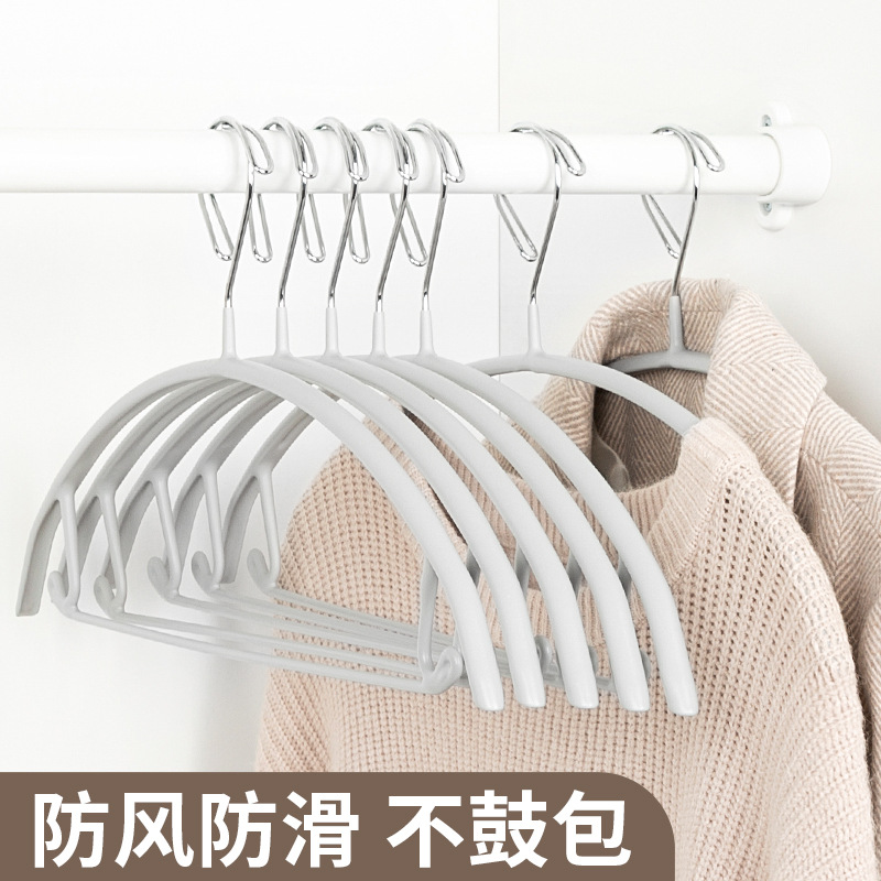 膨らまない洋服ハンガー、マット仕上げ、プラスチックコーティング、半円形、滑り止め、跡が残らない、シャツやキャミソール用ハンガー、防風フック付き