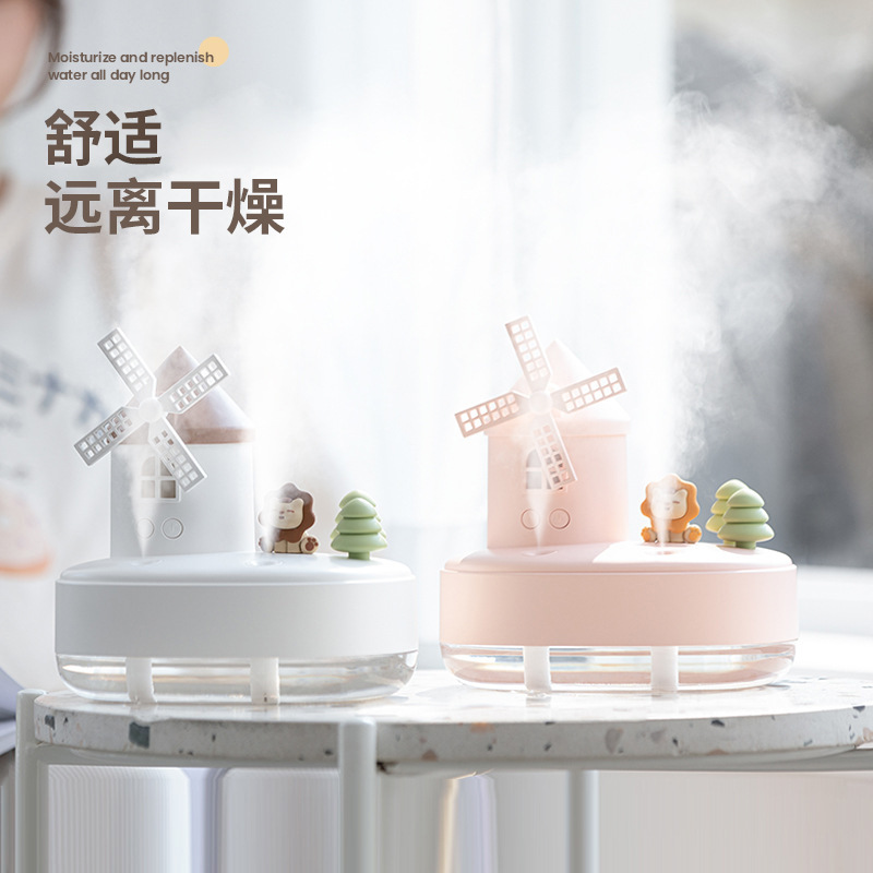 風車音楽加湿器寝室大容量小型デスクトップ漫画家庭用クリエイティブミニダブルスプレー加湿器