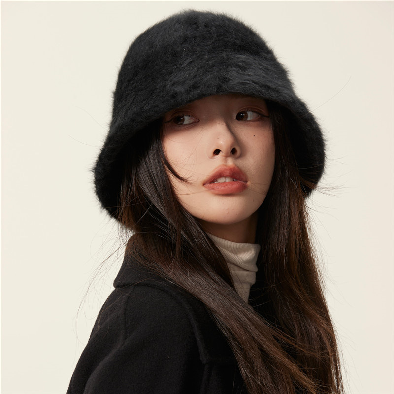 Moさん | 顔のウサギの毛漁師帽の女性秋冬のすっぴんバケツの帽子が顔を覆って暖かいぬいぐるみの帽子