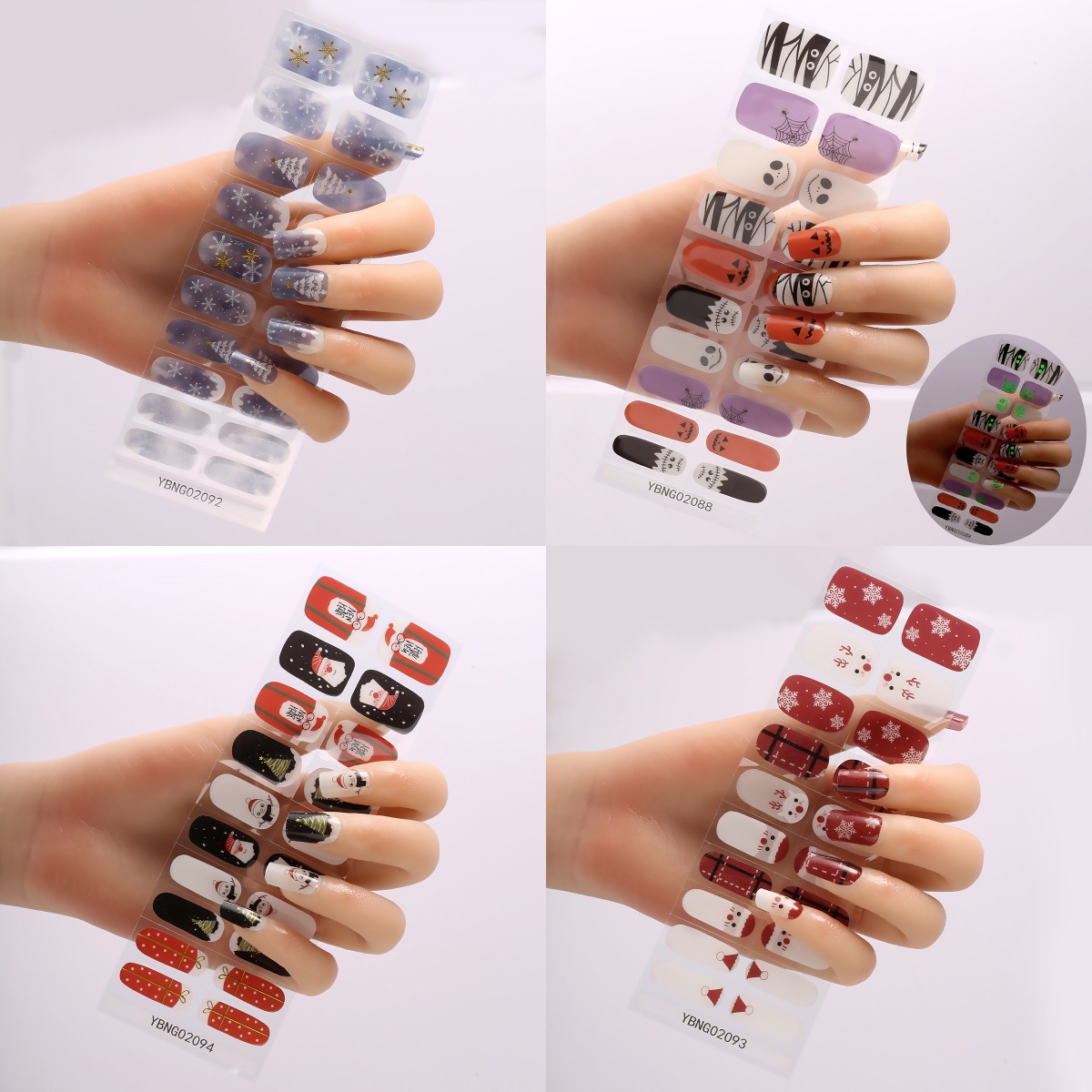 国境を越えたハロウィンとクリスマス用の20枚入り半硬化UVジェルネイルシール、UVライト対応、ホットガール向け