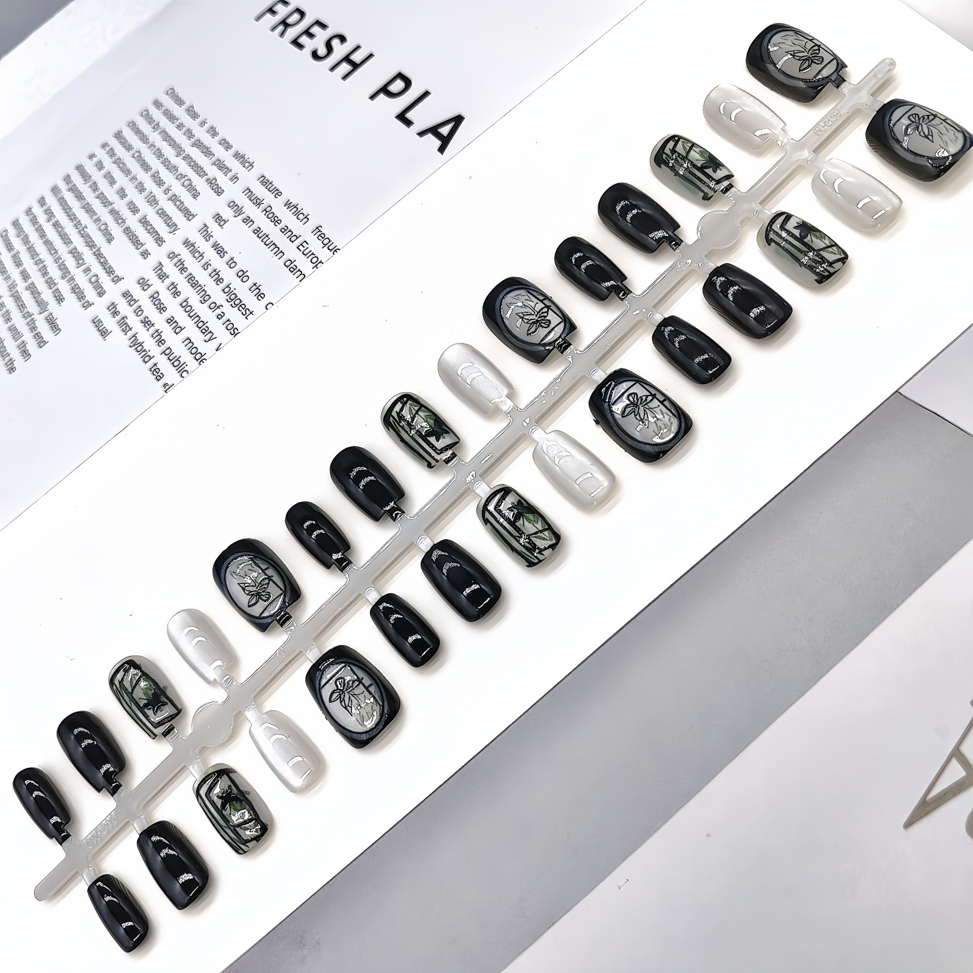 美甲穿戴甲蝴蝶猫眼元素成品跨境热卖甲条贴片美甲店专用甲片批发