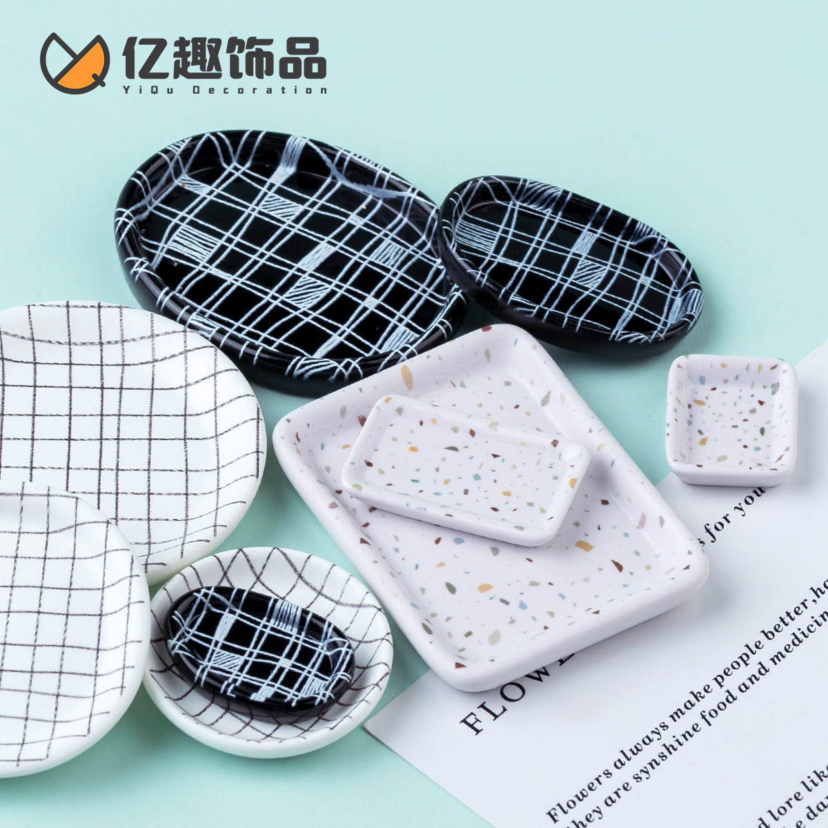 仿真迷你格子纹方圆盘子 娃娃屋手工造景diy装饰品配件微缩小摆件