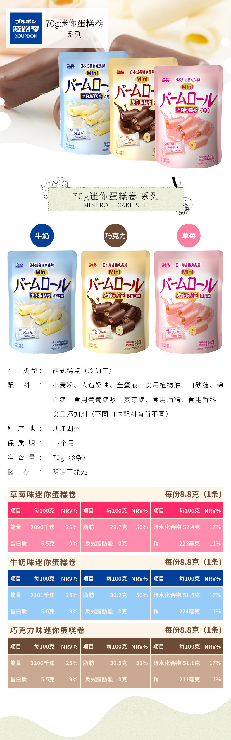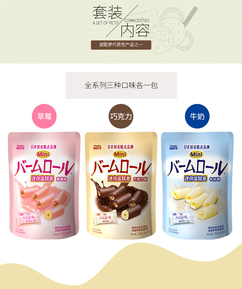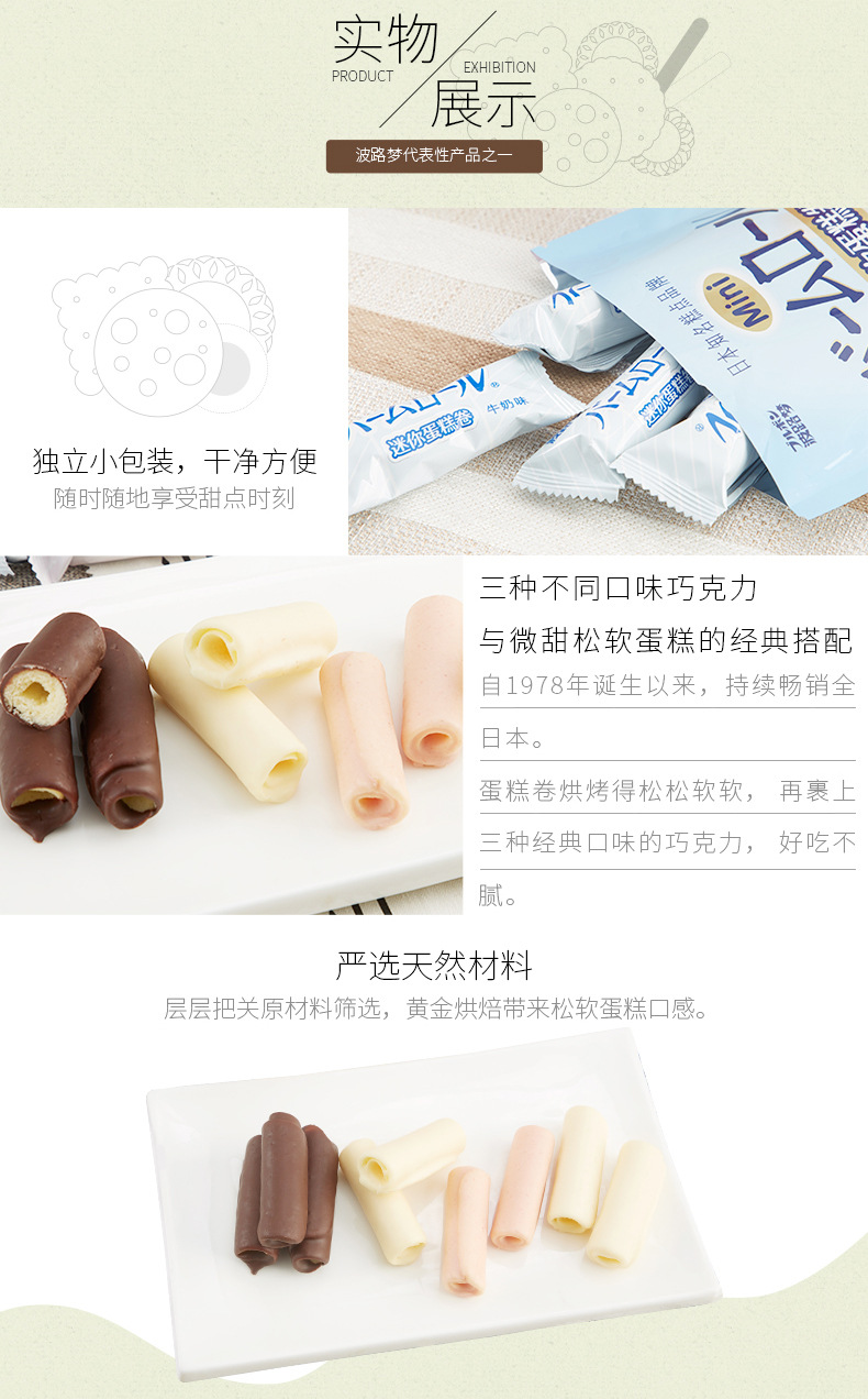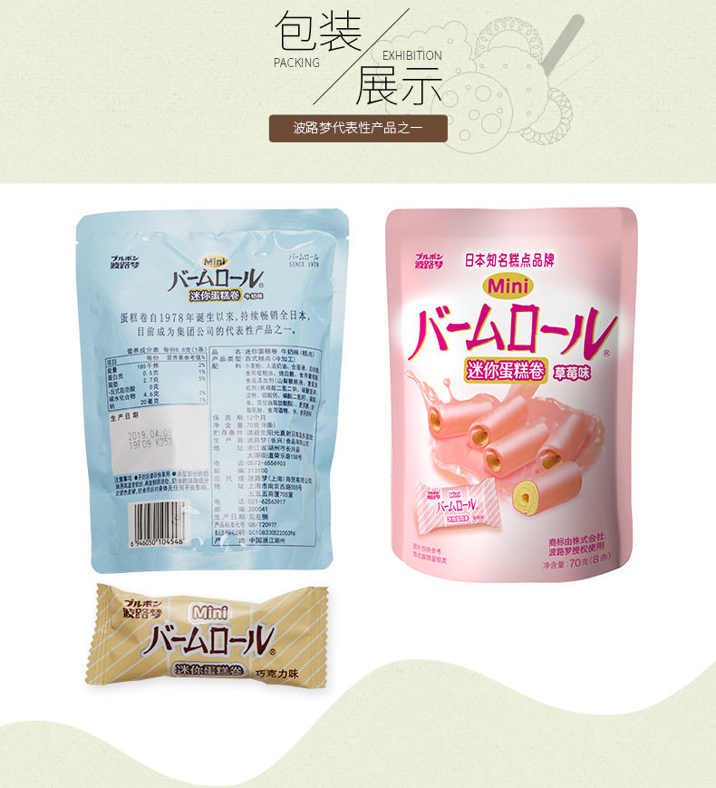 波路夢ミニロールケーキ70gパックチョコレートミルクいちご洋菓子菓子軽食