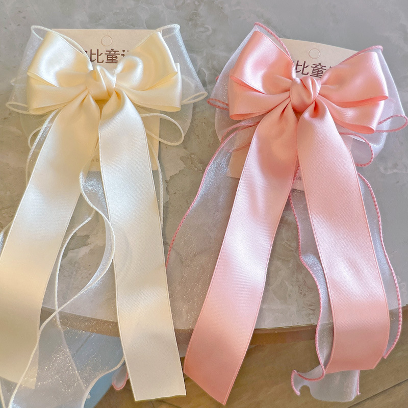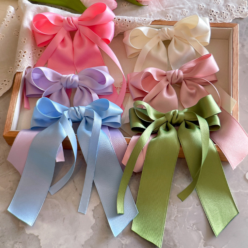 韓系仙気の質感の綿の長いリボンの子供は蝶結びの女の子のヘアピンの女の子のアクセサリーを挟みます。