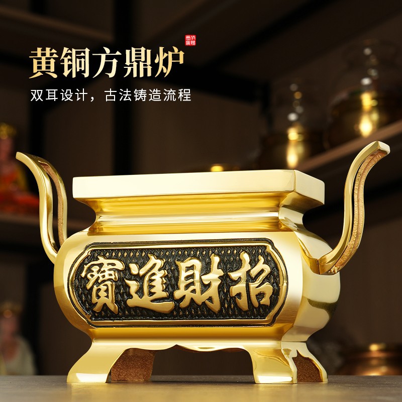 鼎式香炉供香家庭用全銅室内焼香の長方形銅炉関公古風香炉鼎