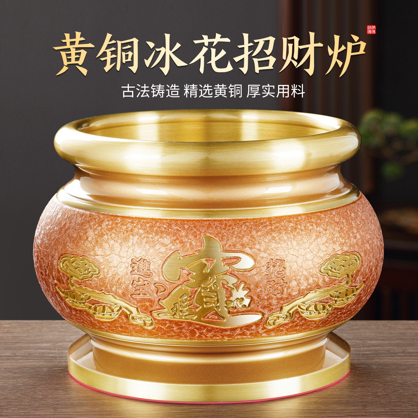 纯黄铜结晶香炉供奉财神爷家用室内佛堂神台仙家招财专用上香寺庙