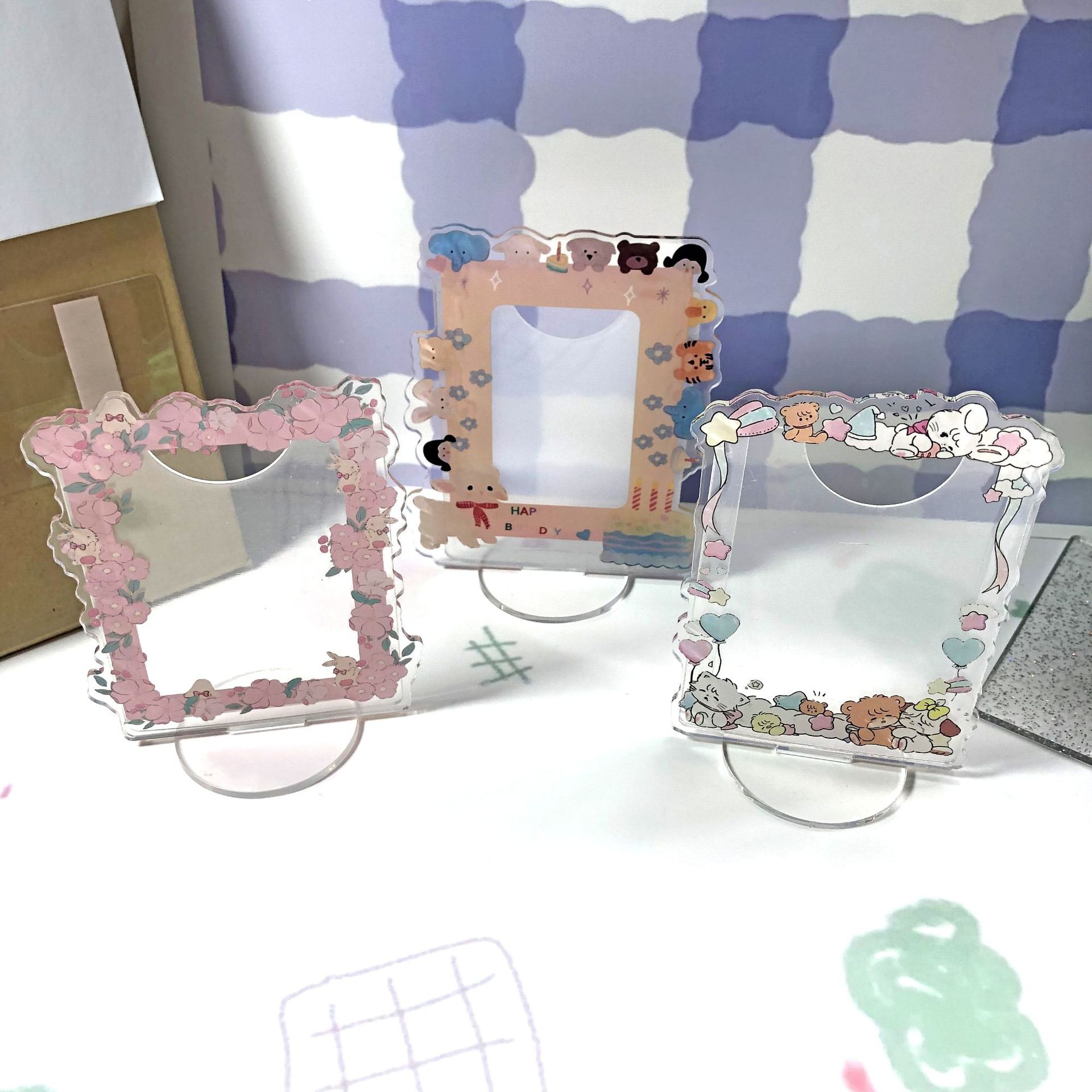 新商品の小さい花のウサギのかわいいアクリルのフォトフレームは3寸のスターの小さいカードを撮影して看板の置物を展示します。
