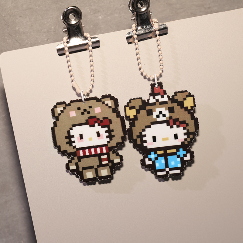 kt可爱轻松熊像素挂件亚克力卡通钥匙扣挂饰萌物礼物学生包包书包