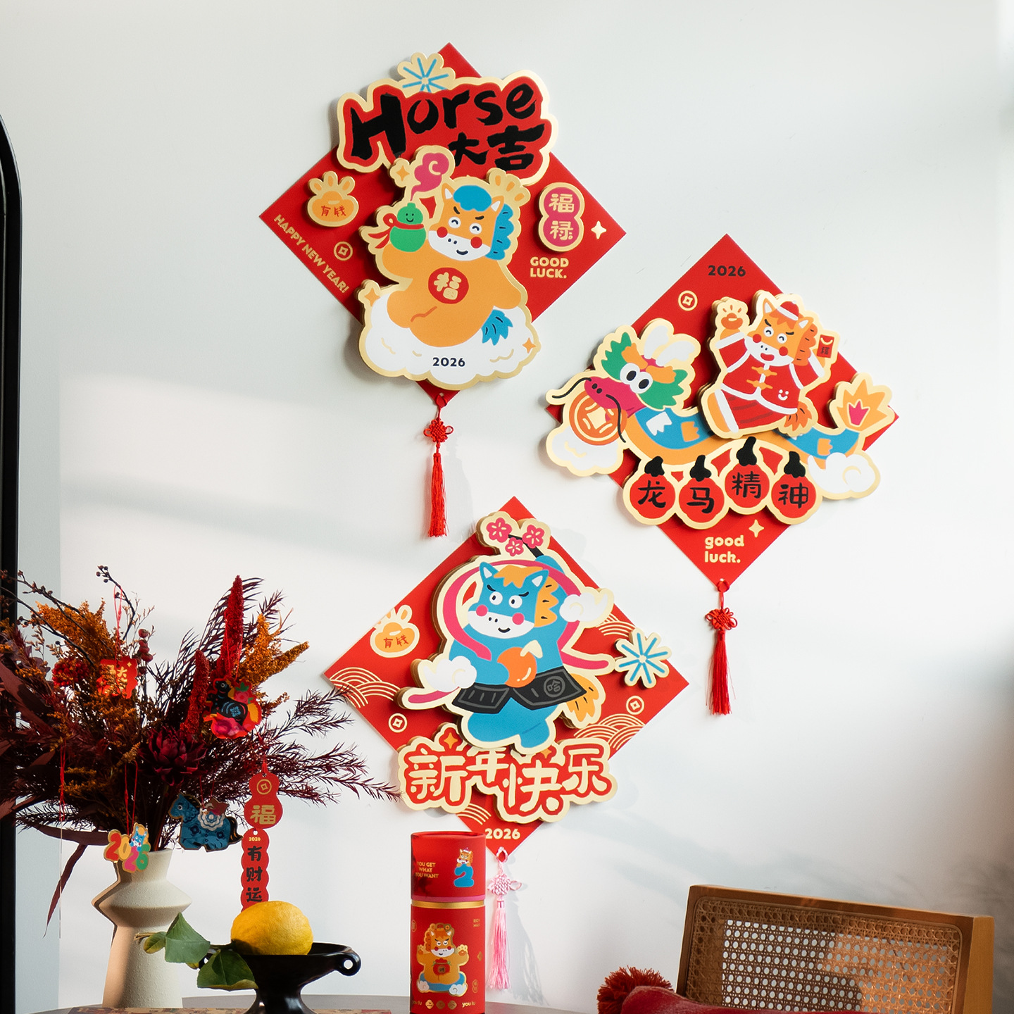 2026马年立体短款对联福字门贴纸春节磁吸过新年卧室装饰用品春联