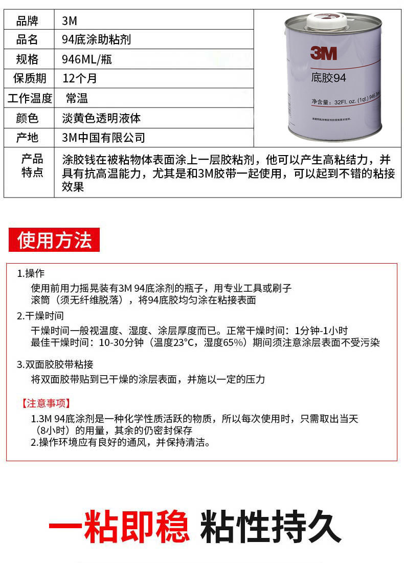 现货助粘剂 3M94底涂剂双面胶增黏橡胶塑料玻璃表面处理3m助黏剂