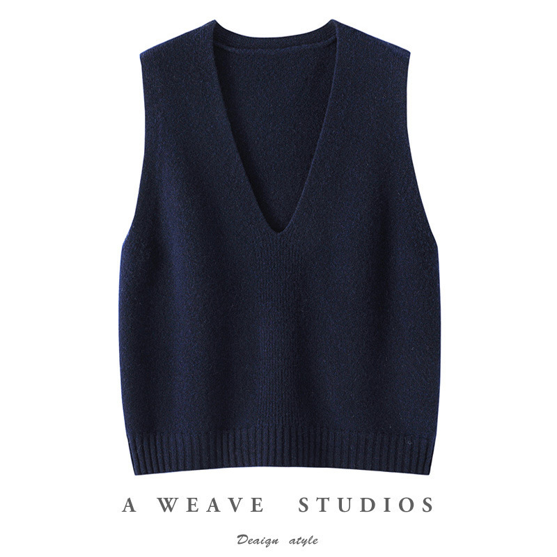 100% 純ウール大vネックニットベスト