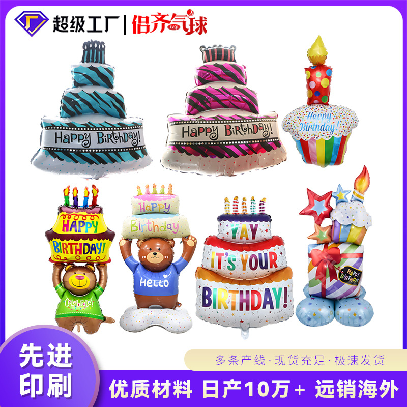 生日蛋糕卡通铝膜立体气球装饰男孩女孩生日氛围道具拍照布置用品