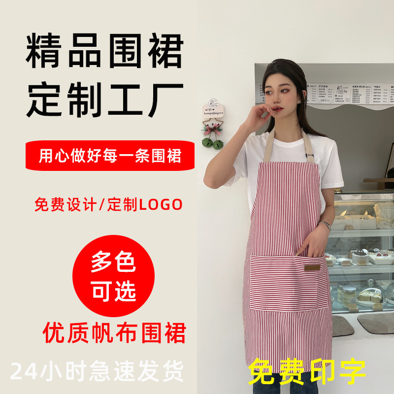 【卸売り量が多い】キャンバスエプロン防水防汚プリントロゴ対外貿易カフェキッチン仕事アマゾン