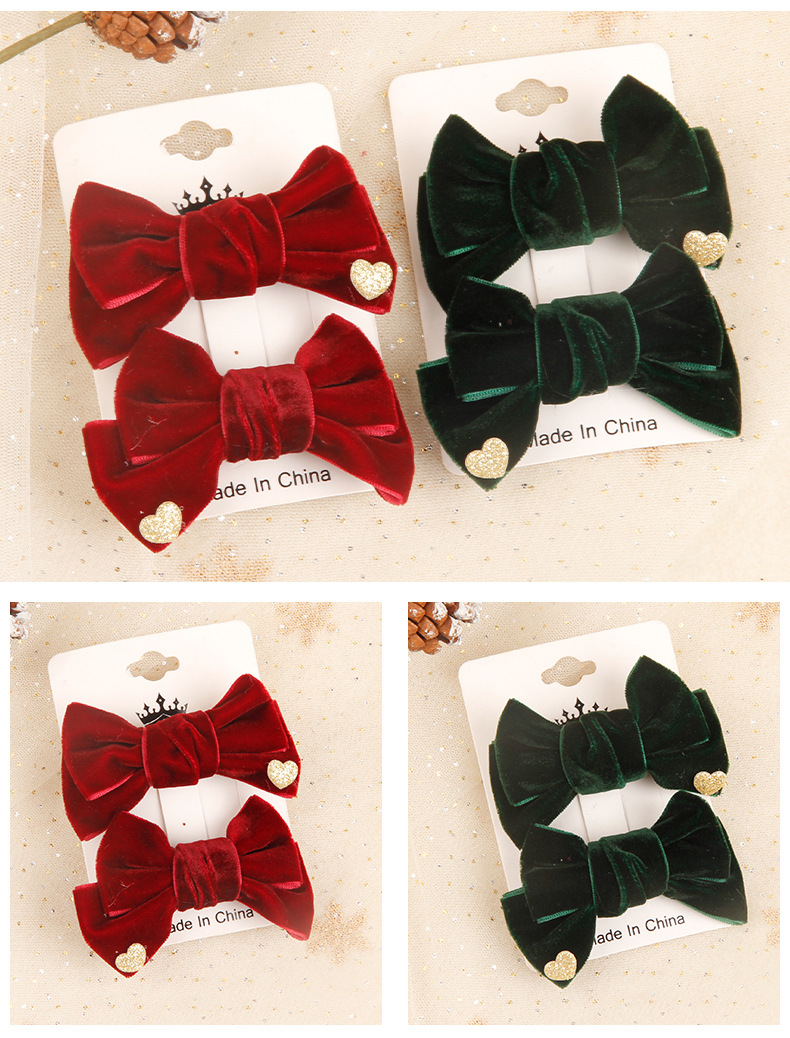 カラー 明るいベルベットのリボンのカチューシャ-赤,明るいベルベットの蝶結びのカチューシャ-緑,明るいベルベットの蝶結びのヘアピン-赤,明るいベルベットの蝶結びのヘアピン-緑