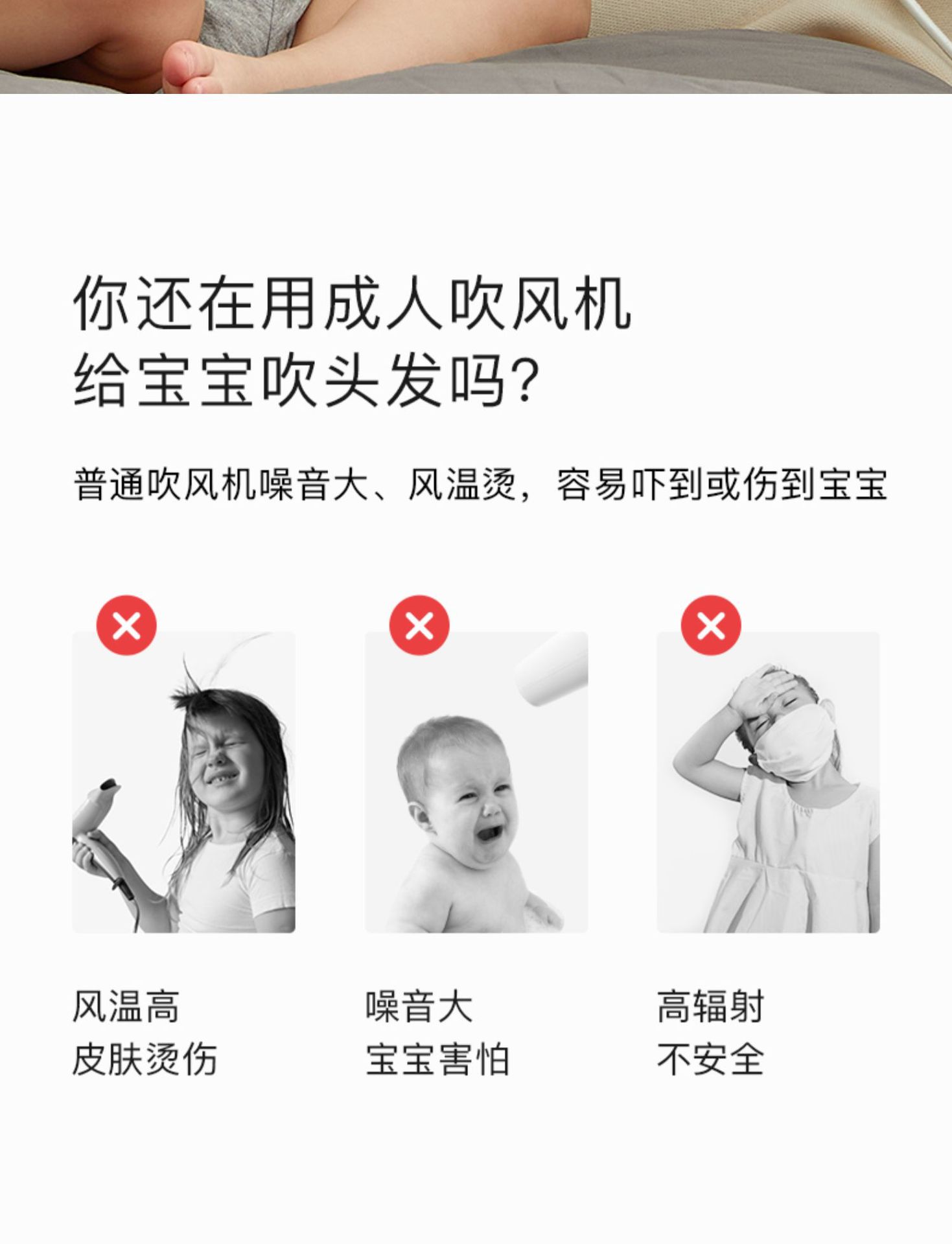 婴幼儿无线吹风机超静音低辐射柔风护发吹屁屁宝宝电吹风静音便携