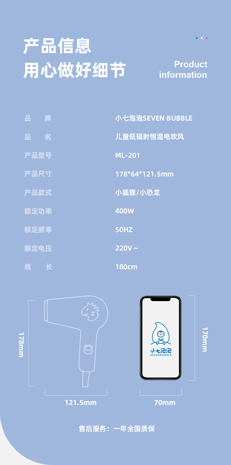 小白熊婴儿吹风机吹屁屁电吹风专用无线恒温低辐射儿童吹风筒7006