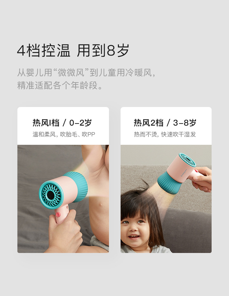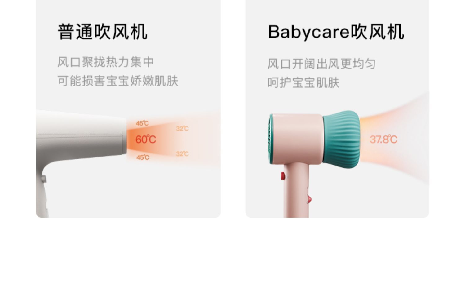 babycare儿童吹风机新生婴儿宝宝专用吹屁屁电吹风无线低辐射轻音