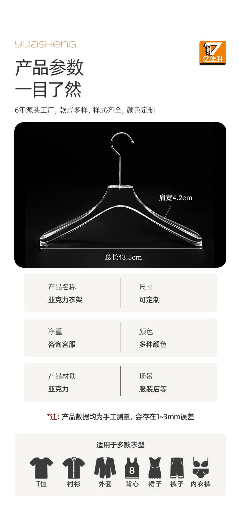 アクリル透明ハンガー衣料品店専用洋服ハンガー滑り止め男女兼用衣料品小道具メーカー