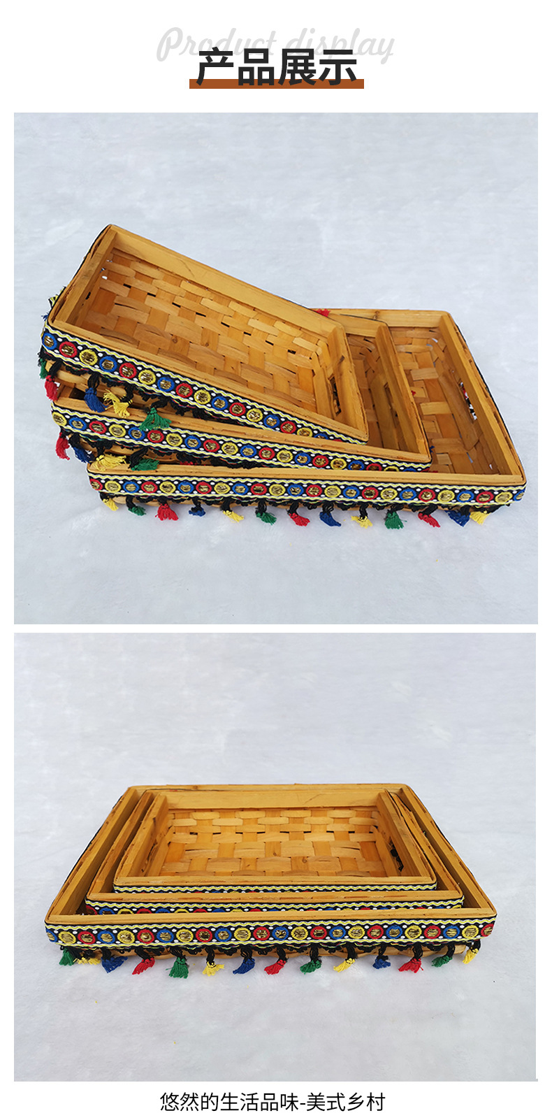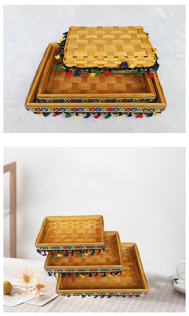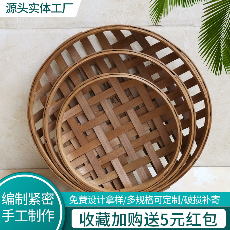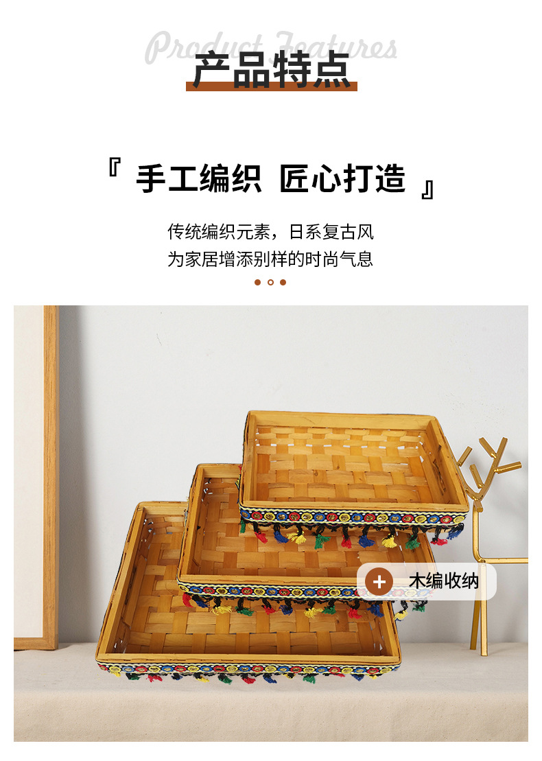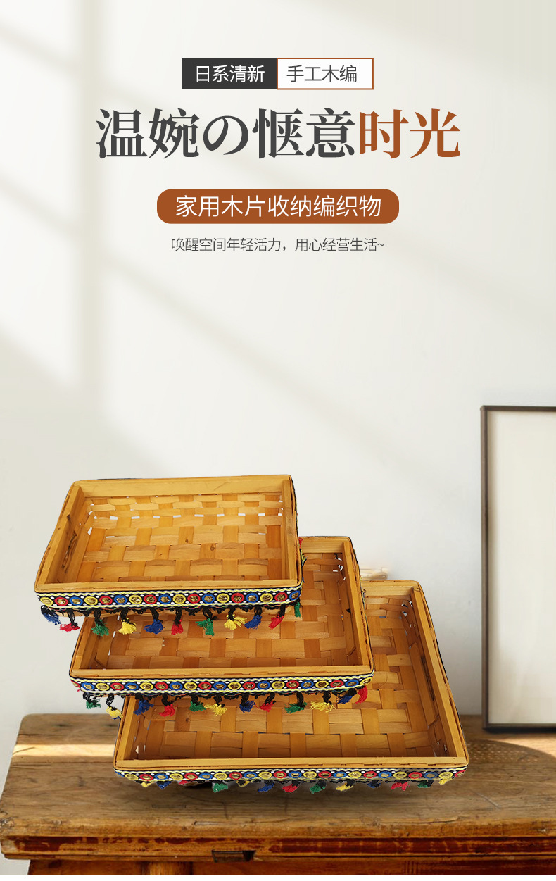 オーダーメイド小清新木色手芸編み収納バスケット田園風木片タバコ手編み収納バスケット