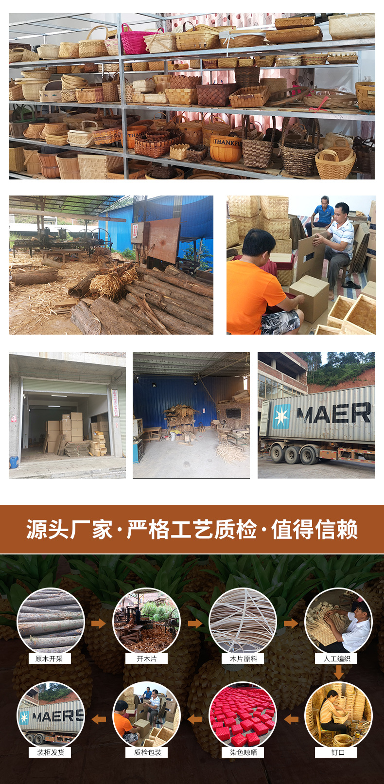メーカーは木片編みの収納かごを供給しています。