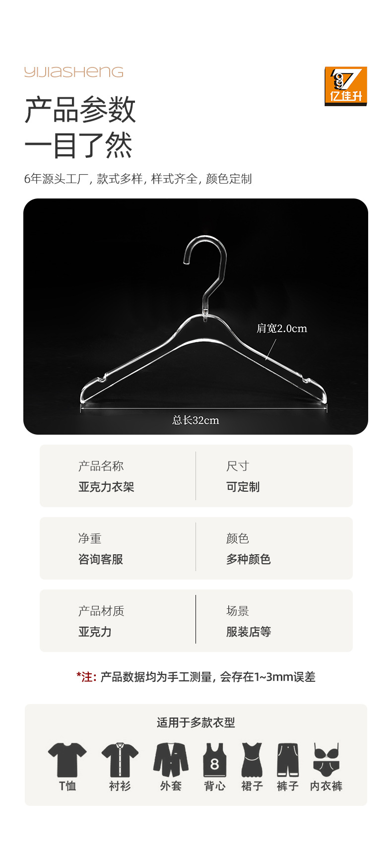 アクリル透明ハンガー卸売り洋服店洋服店ズボンハンガープラスチック有機ガラスハンガー工場