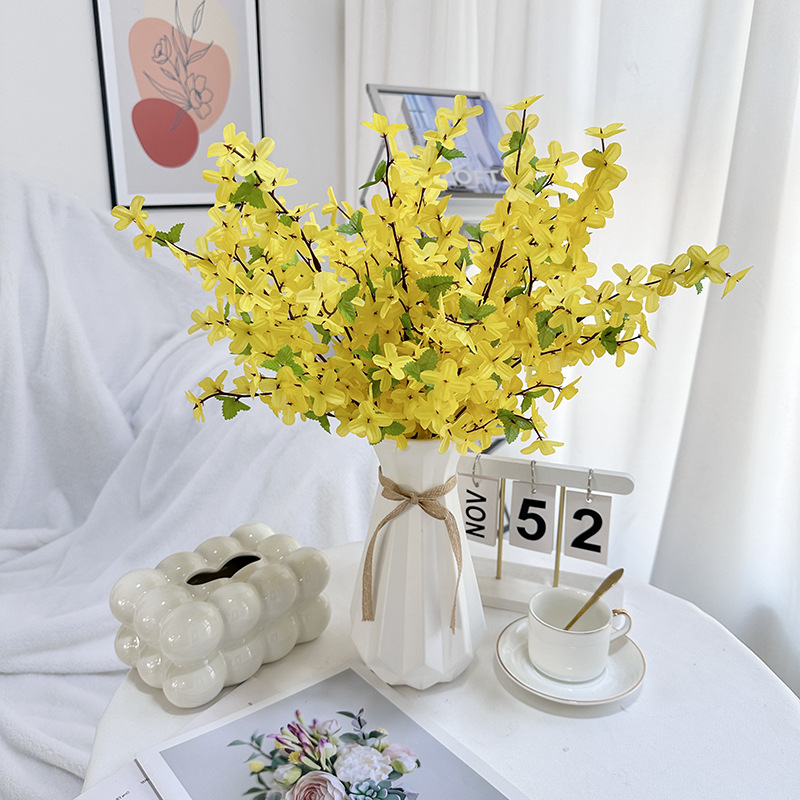 黄色の7叉の春の花の結婚祝いの撮影の装飾をシミュレーションします。