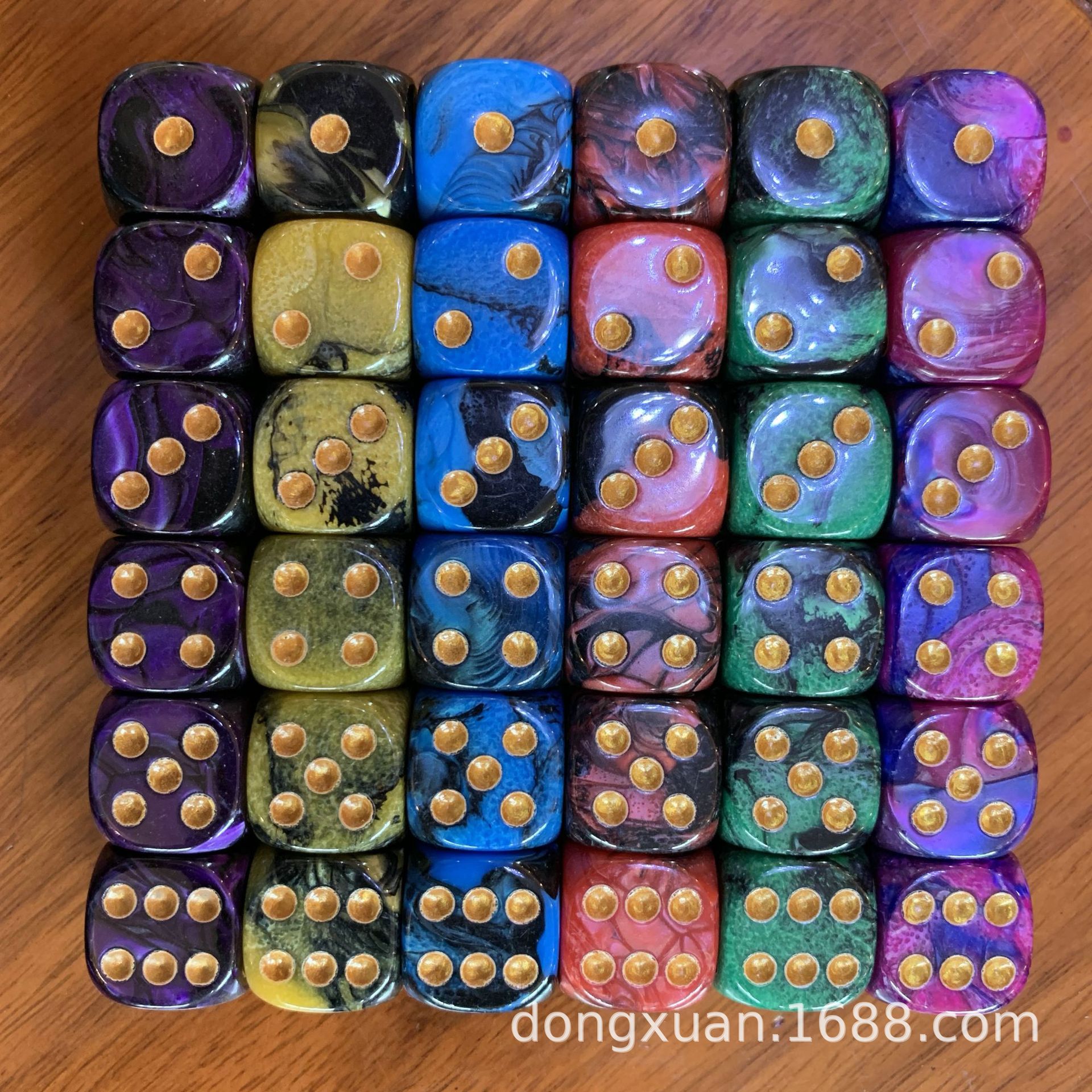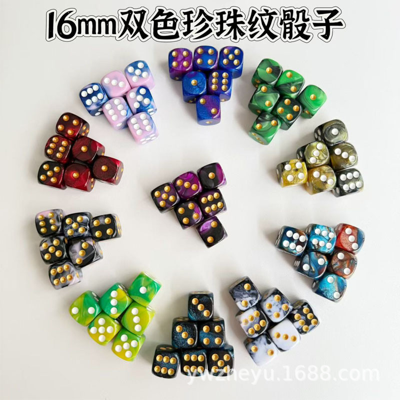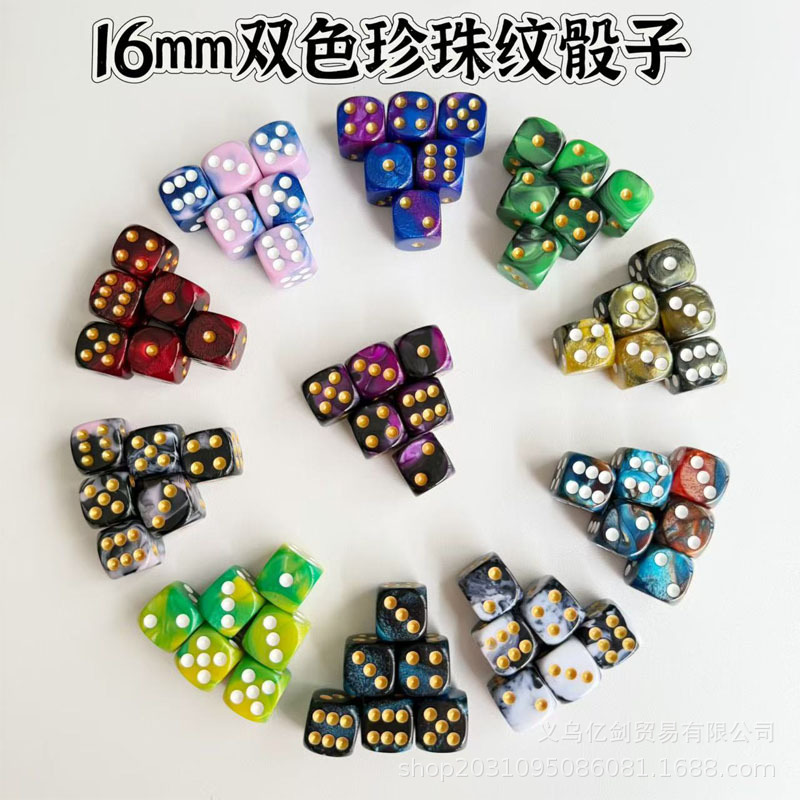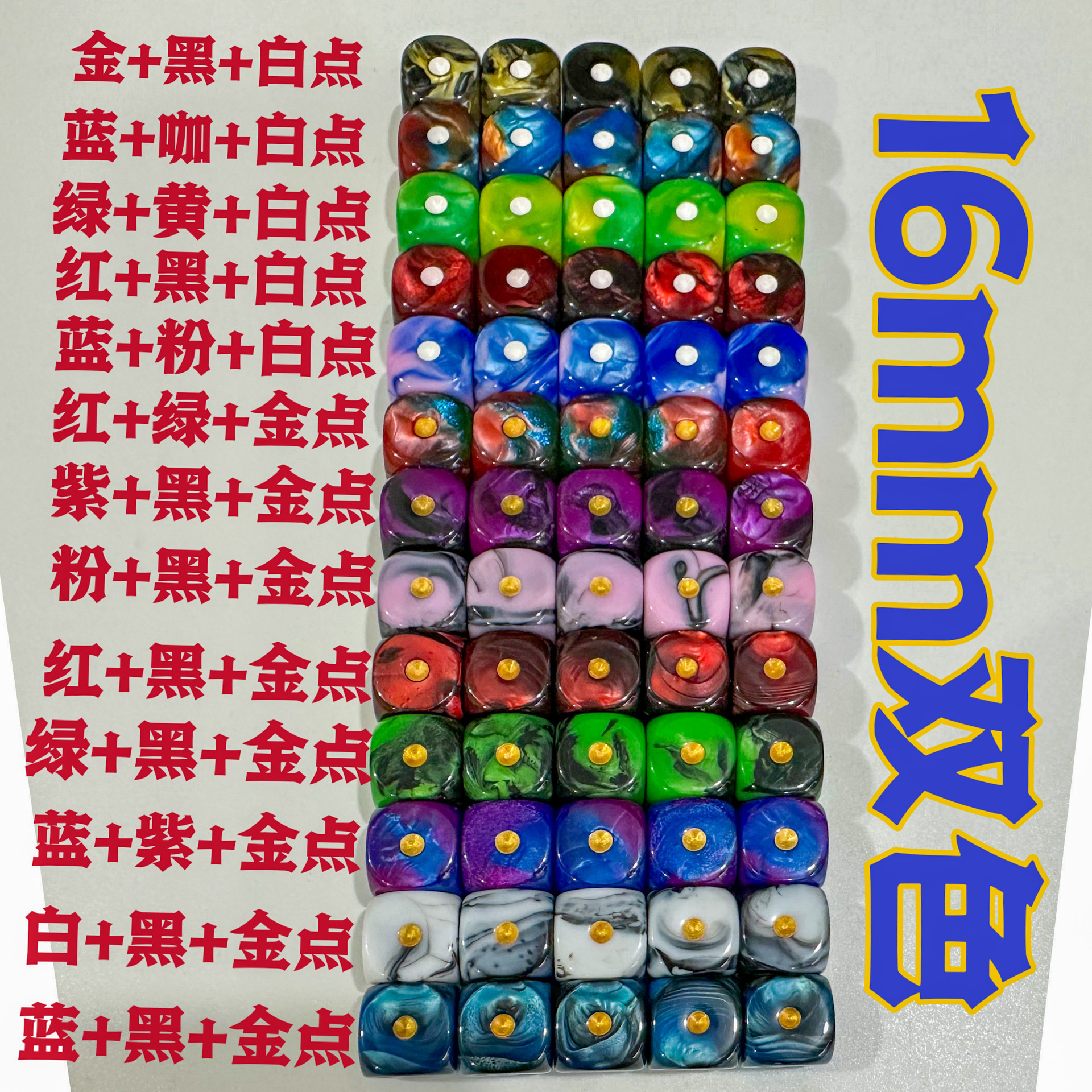 16mm角2色点数多彩2色サイコロ金点通常1 ~ 6点サイコロ玩具国境を越えたゲーム色