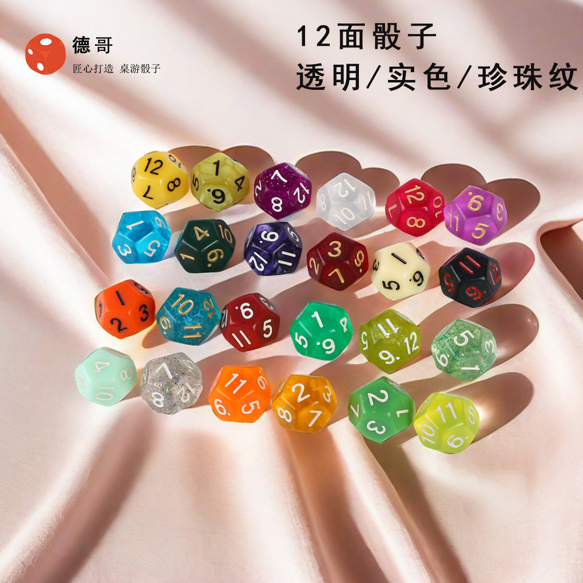 各種12面のサイコロの色子ふるいのサイコロは真珠の紋様の実色の透明な色を含みます。
