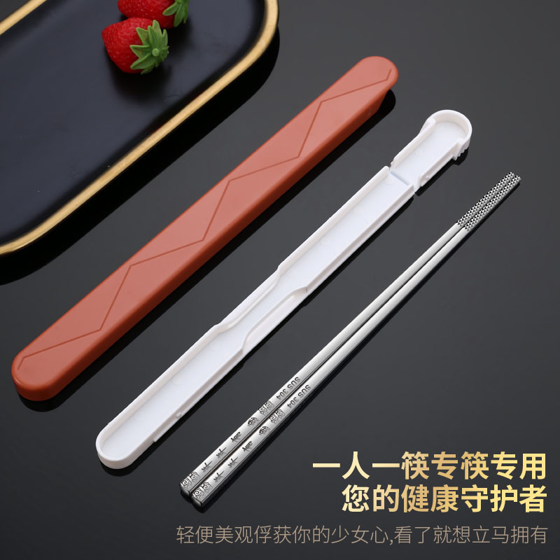 箸収納ケース304ステンレスセット家庭用滑り止め学生一人で箸一人食携帯食器