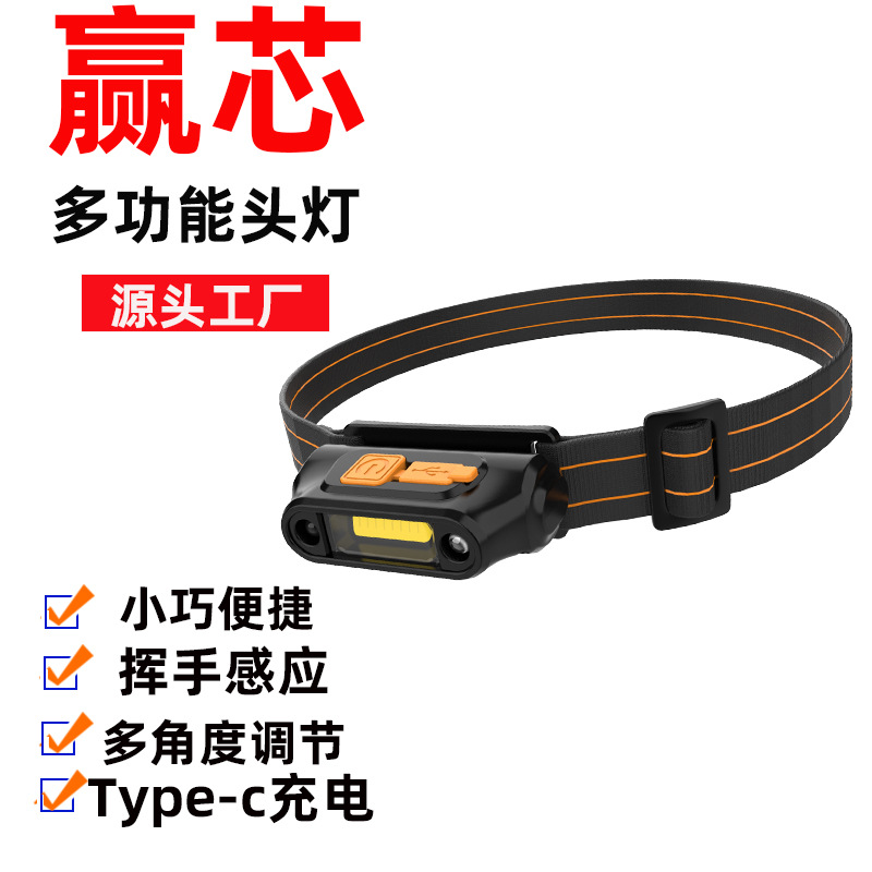 跨境新款头灯usb充电户外露营钓鱼灯强光照明感应多功能led工作灯