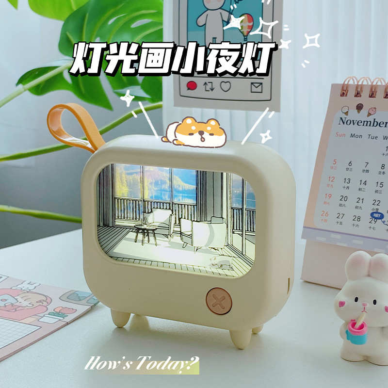 創意照明画雰囲気小夜灯高顔値テレビ置物小電気スタンドusb充電調整白暖光