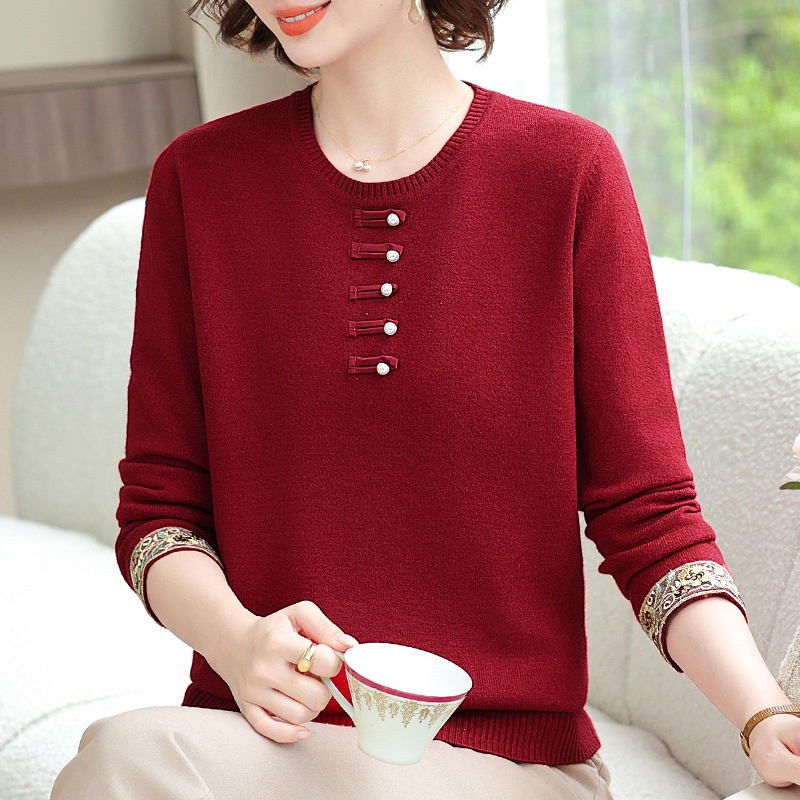 2025年新作ママ向け秋服おしゃれニットセーター、中高年女性向け春秋国民風セーターインナー