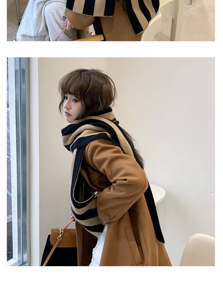 ウールのマフラーを含む女性2024新型秋冬韓国版高級雰囲気感ストライプが色を囲んで首をかぶっている男性ブーム