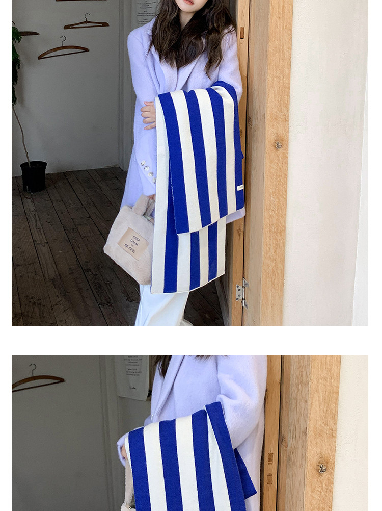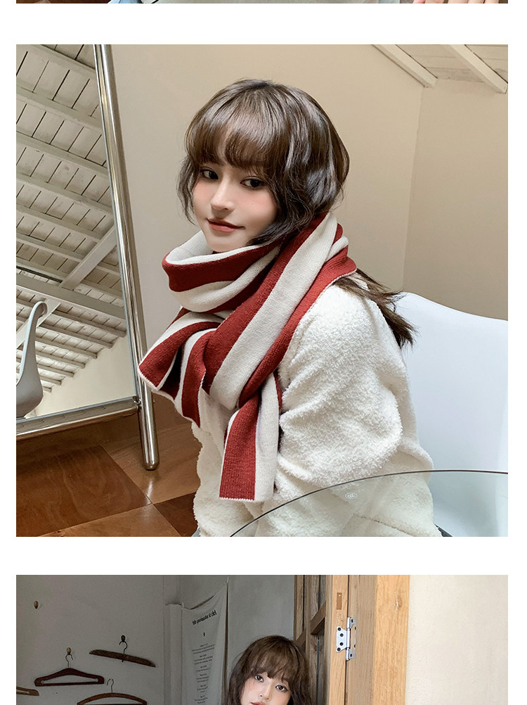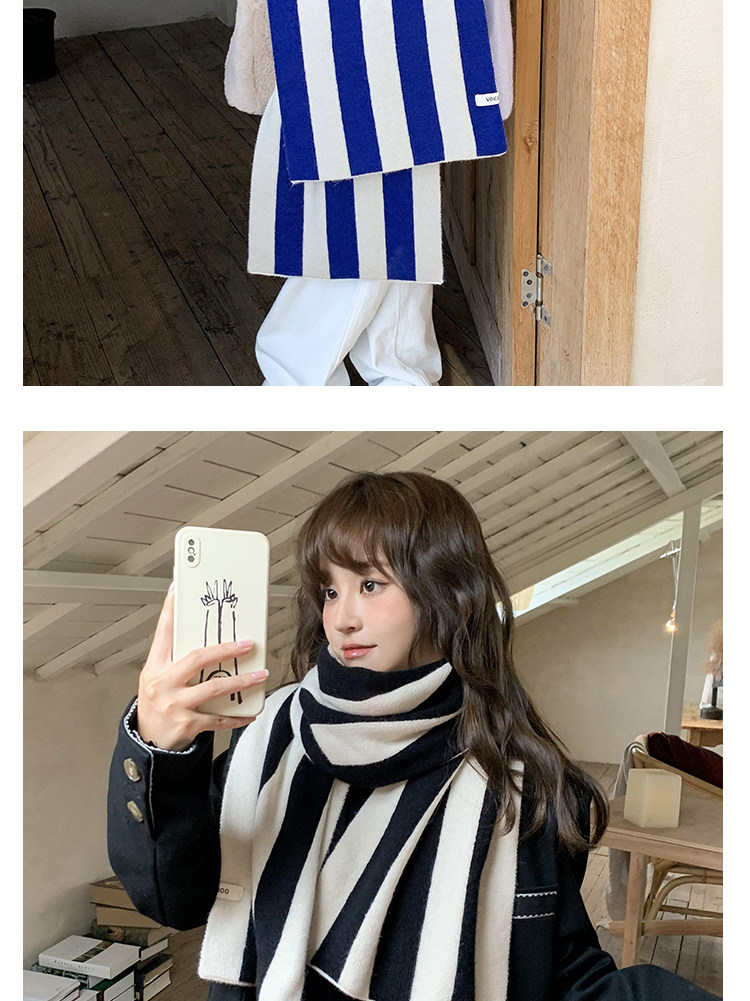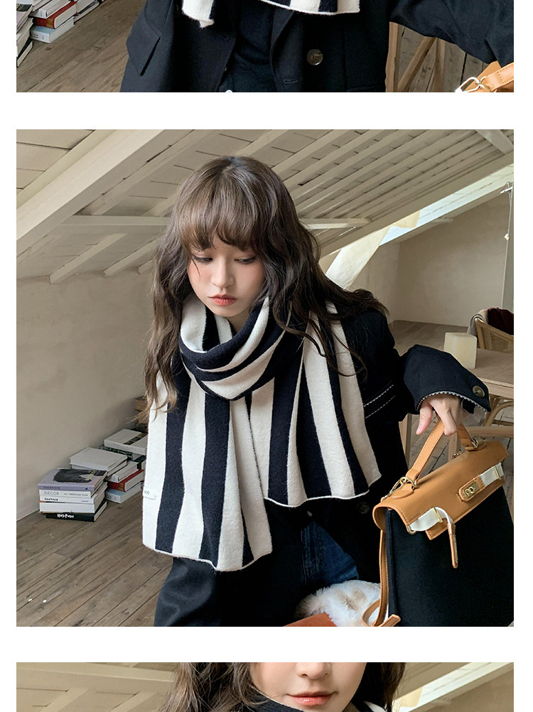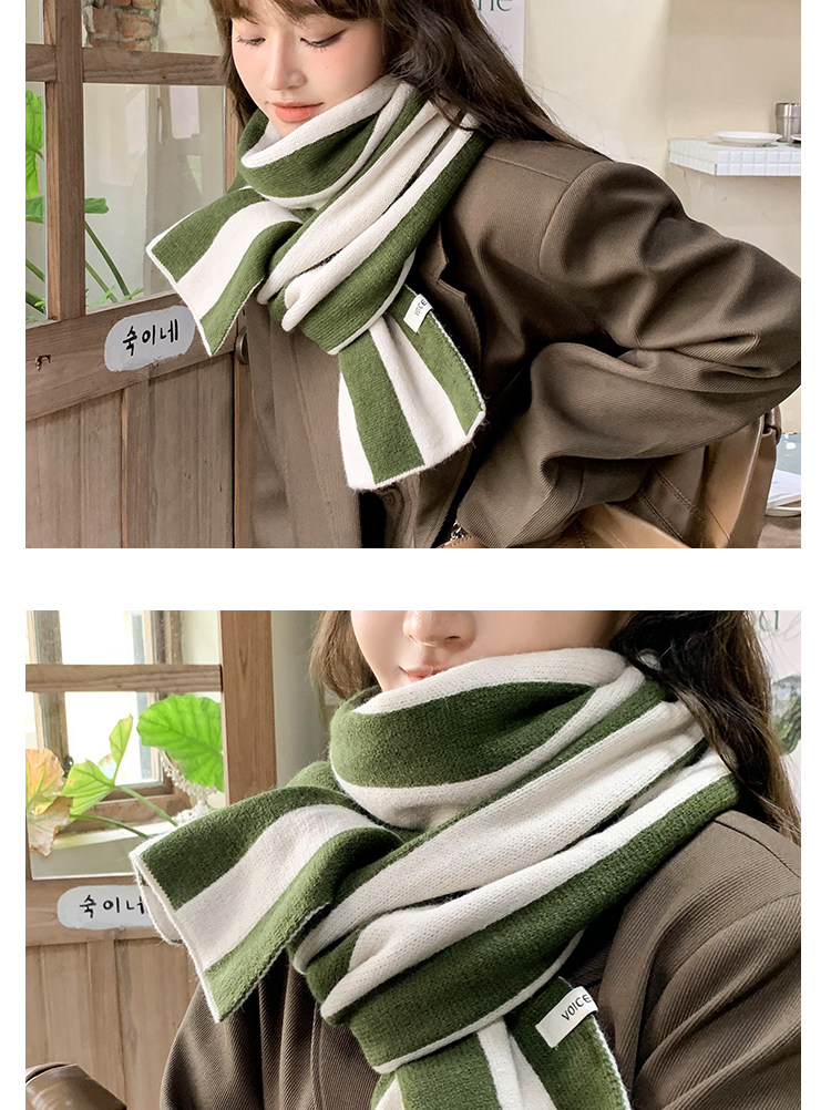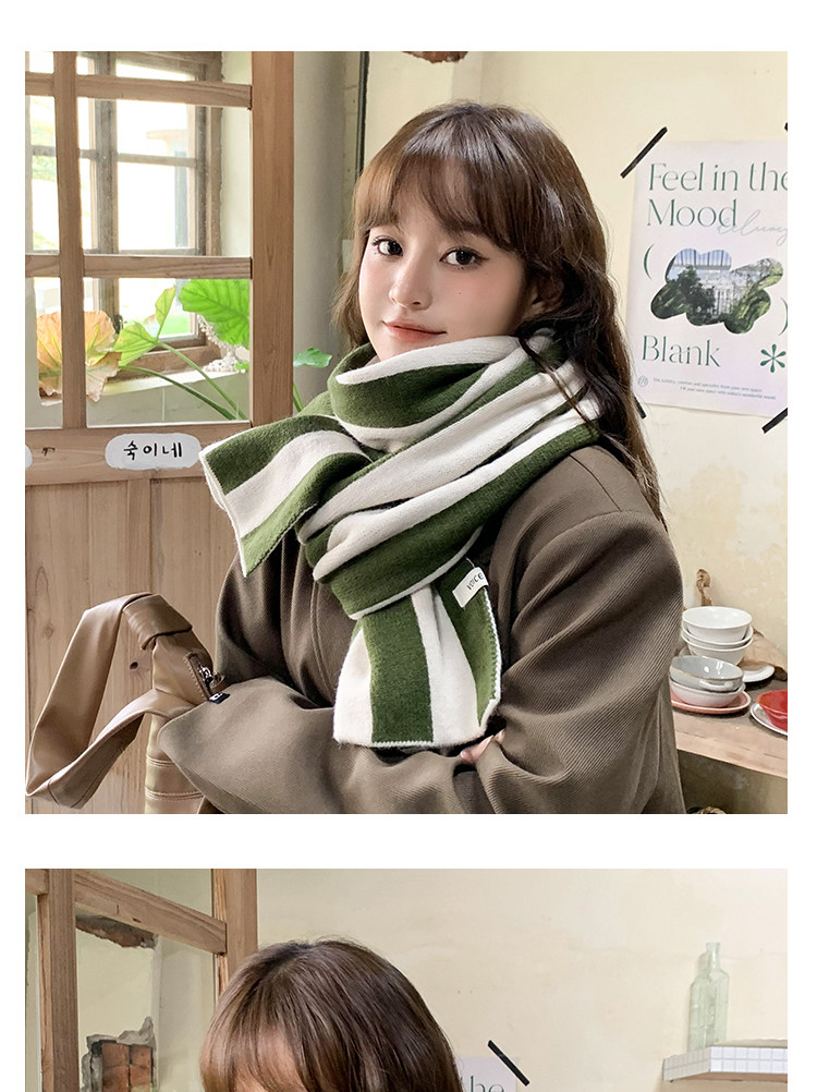 新商品の韓国版の色合わせのストライプのニットのマフラーの女性の秋冬の学生は厚くて暖かいです。