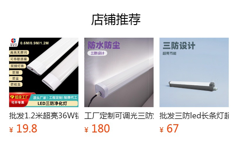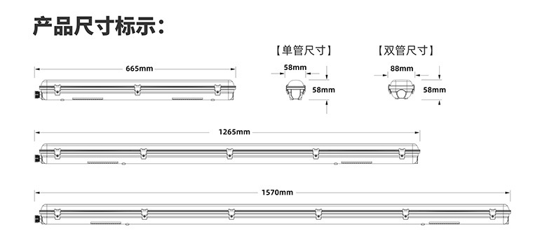 LED一体型ストリップ防水屋外三防凍冷蔵倉庫工場浴室超高輝度日光灯