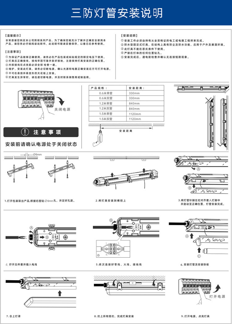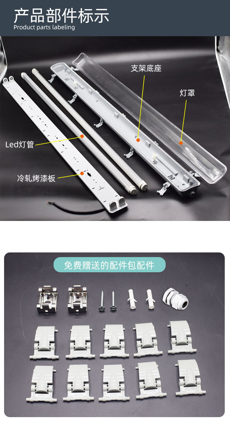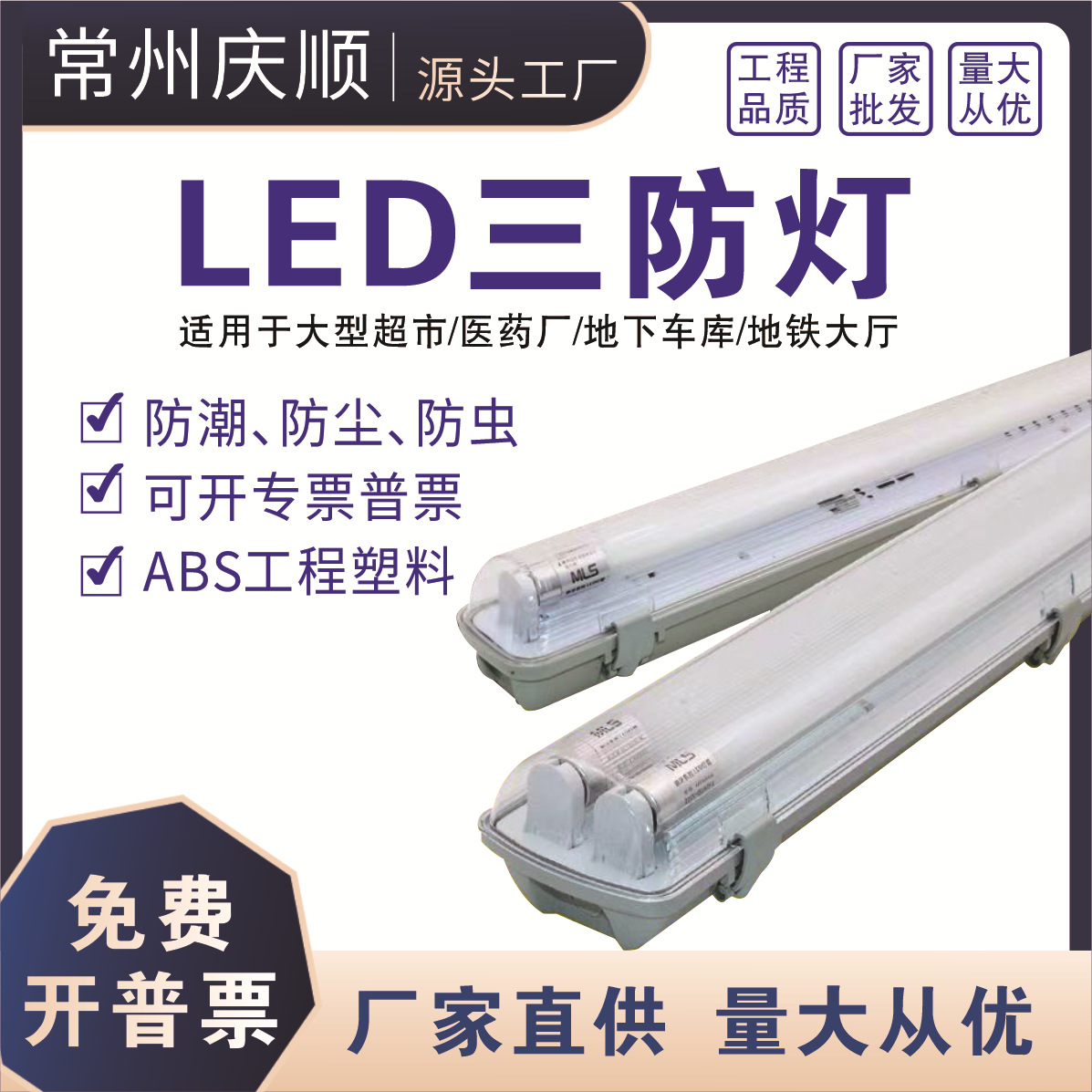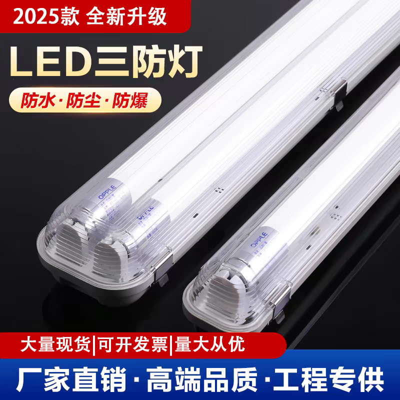 LED三防灯全套带罩双管长条1.2米防水防尘防虫防爆日光灯T8支架