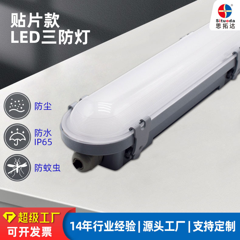 工厂LED三防灯1.2米超亮防潮灯停车场商超车间一体化贴片式三防灯