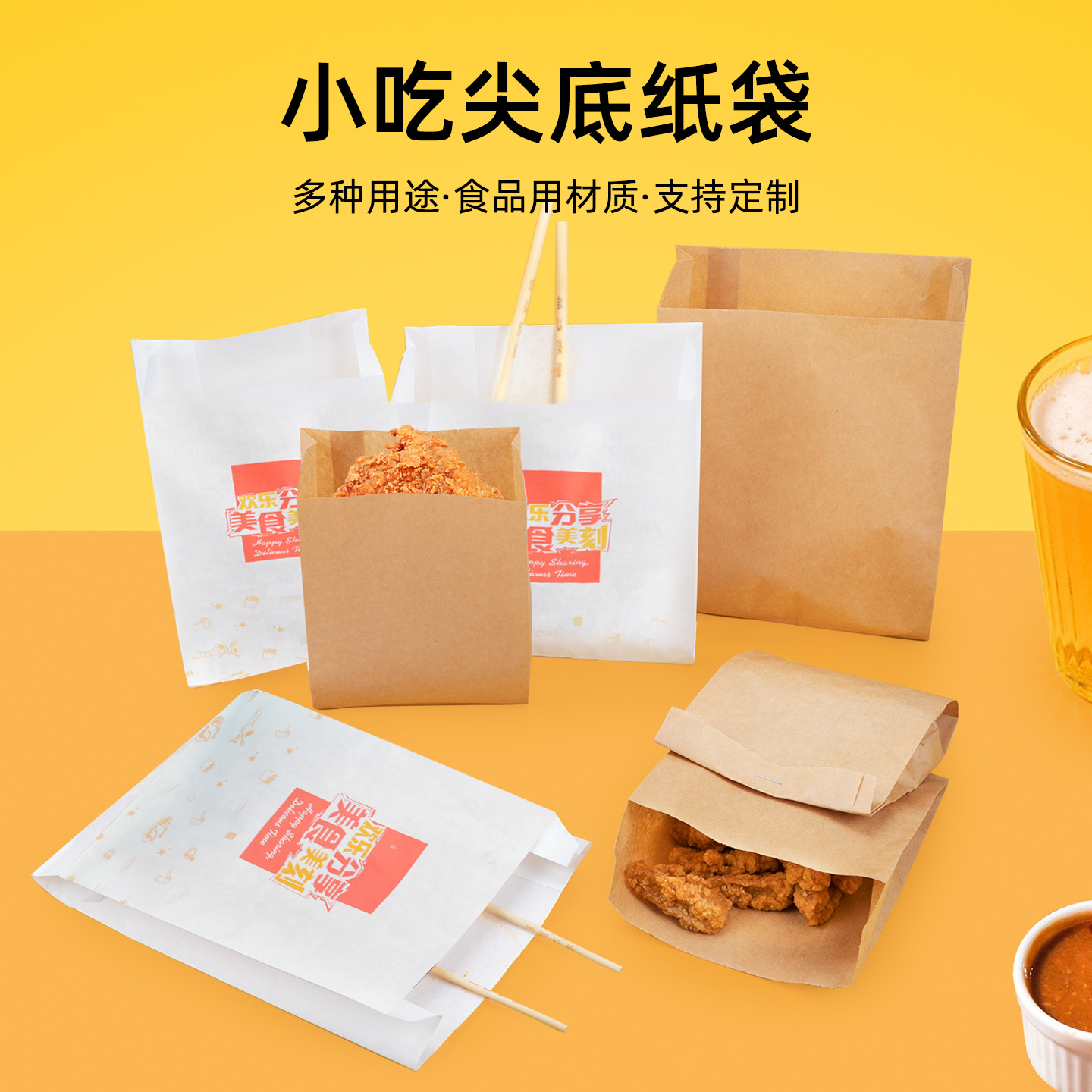 カスタムスナック紙袋非淋膜ポテトチップス袋高低口尖底紙袋全説明防油紙袋