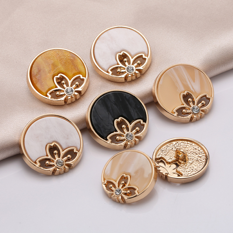 金属ボタン、花、ダイヤモンド、合金手縫いボタン、女性用コート、ウインドブレーカー、セーター、ファッショナブルな装飾ボタン