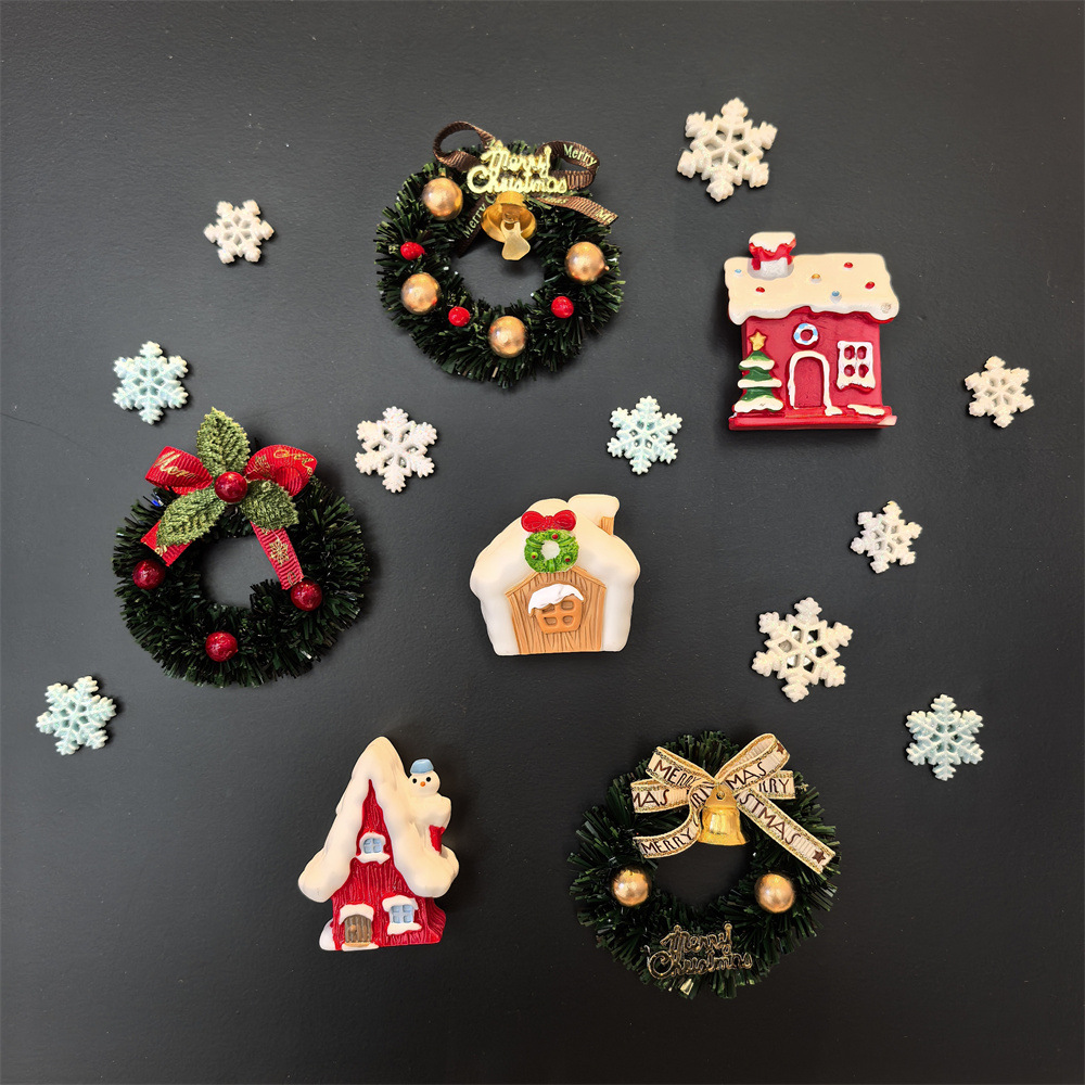小红书同款圣诞花环红房子雪花立体冰箱贴磁铁氛围感装饰雪屋磁吸