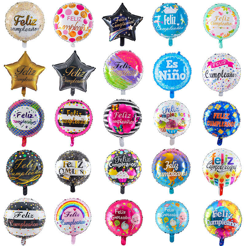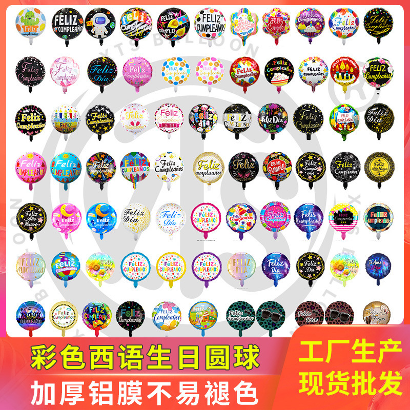 2025新款西语圆形铝膜气球 生日派对装饰圆球多铝箔气球厂家现货