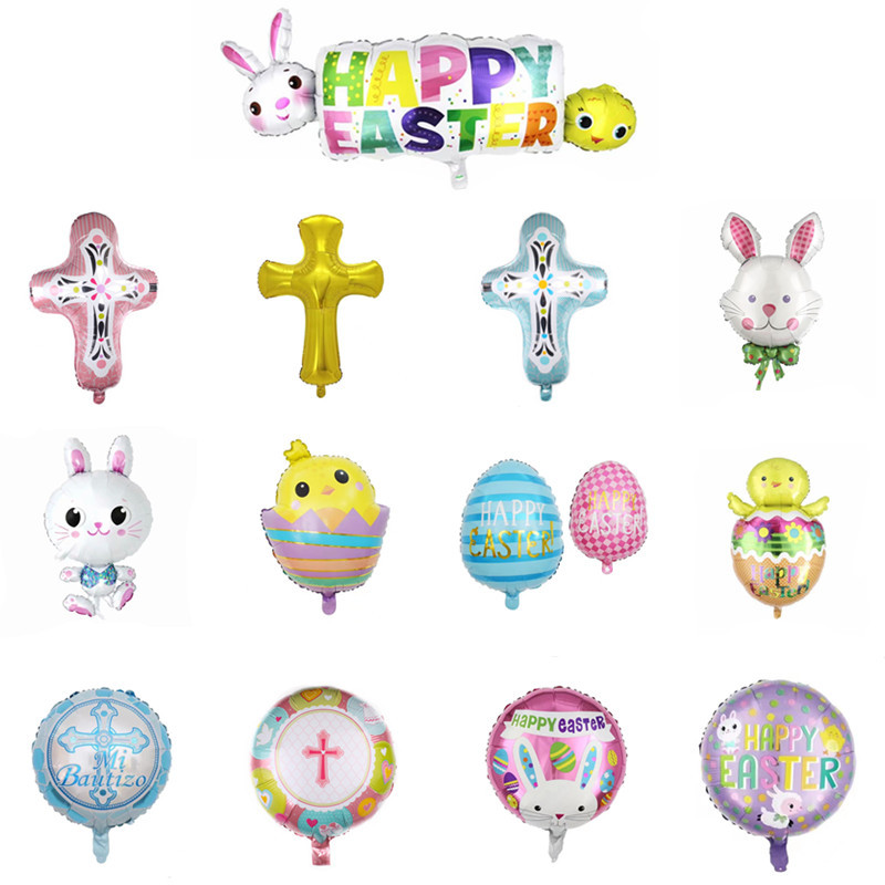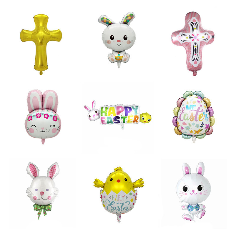 イースター漫画クロス形状ウサギ赤ちゃん诞生日洗濯エチケットアルミ膜ラウンドバルーン卸売