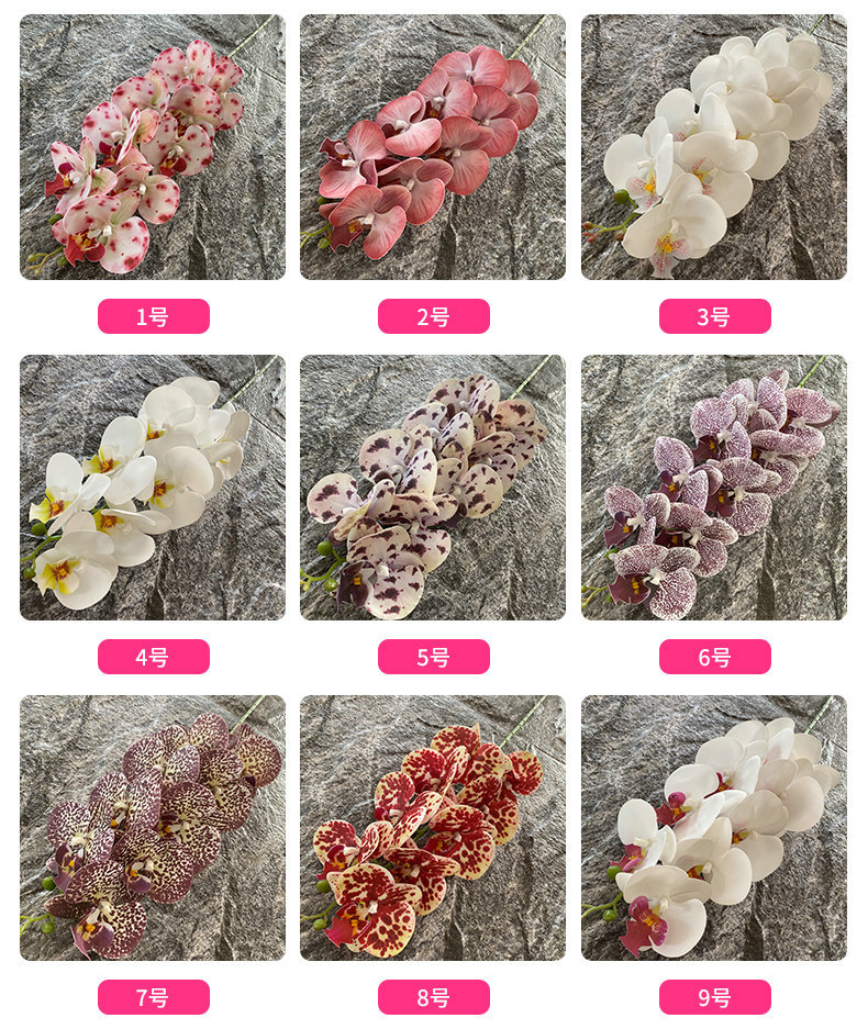 メーカー直売の新型シミュレーション9頭の3d胡蝶蘭結婚式ホテルのショーウインドーの偽花の柔らかいゴムの生け花の置物の卸売り