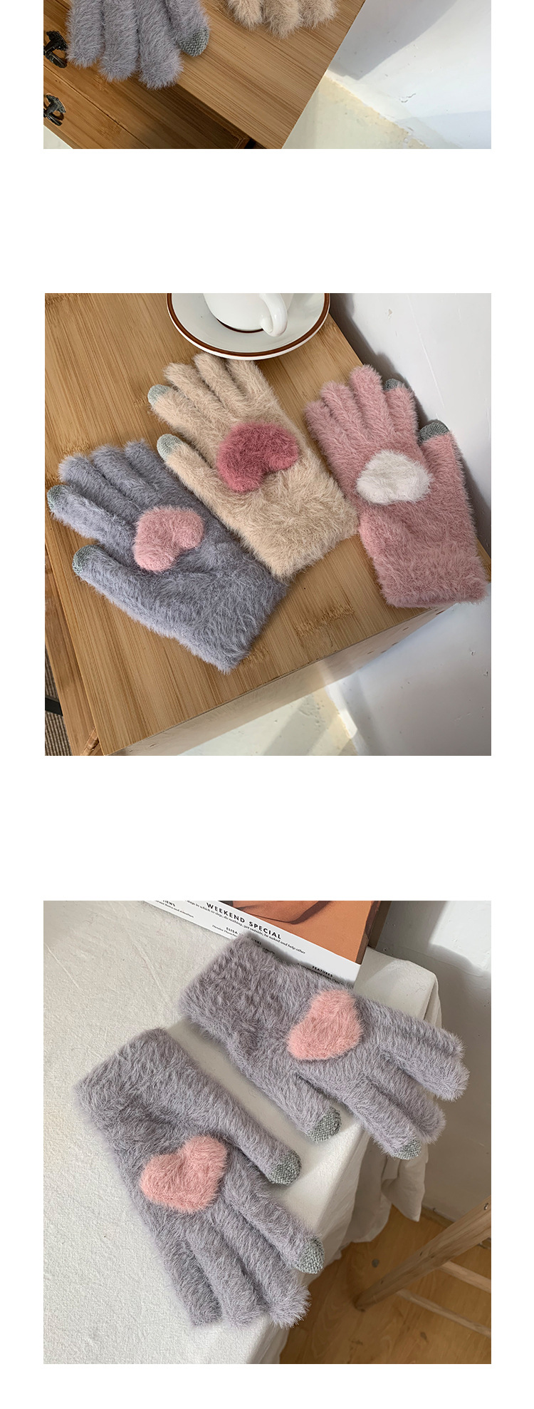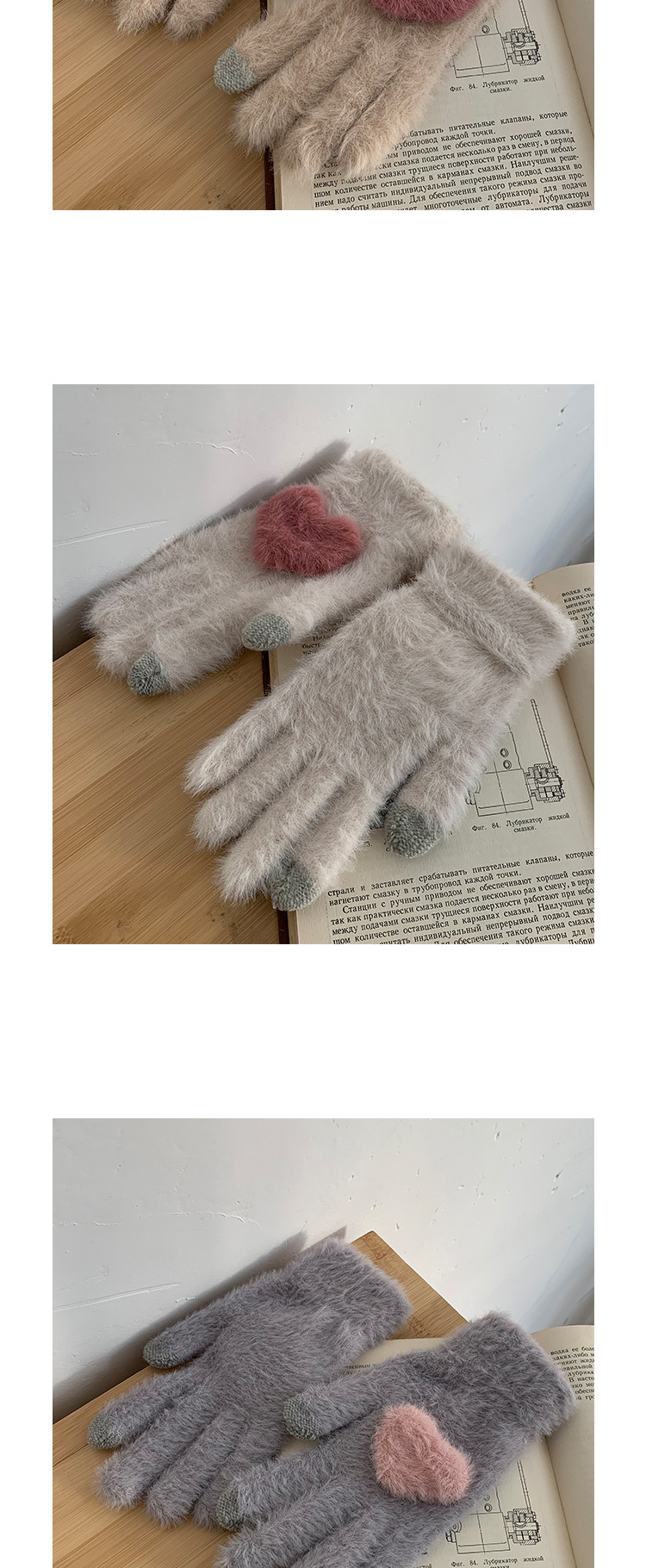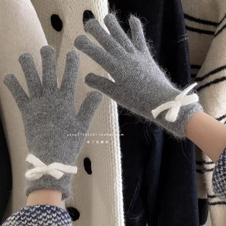 软糯兔毛灰色针织毛线五指加厚保暖手套女冬季骑行防寒防风毛茸茸
