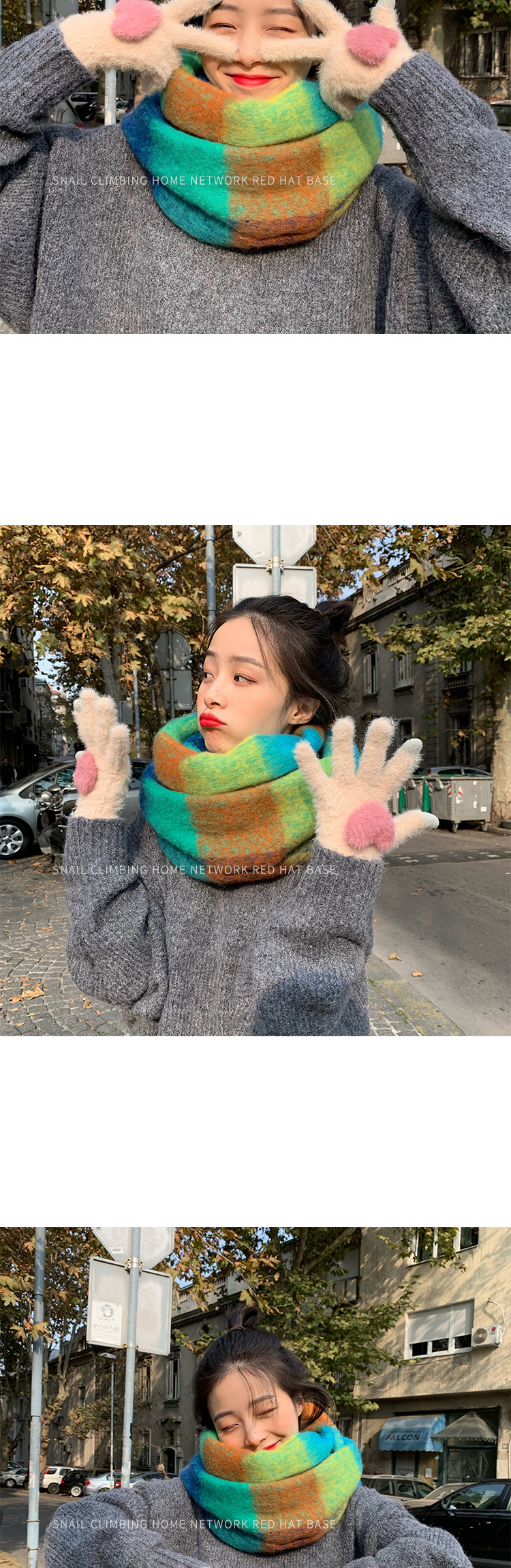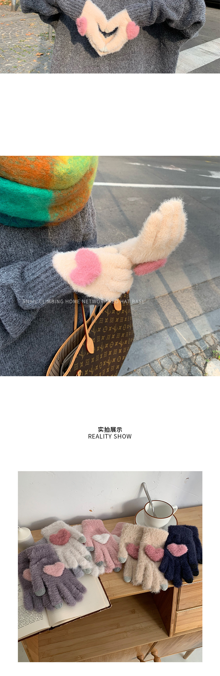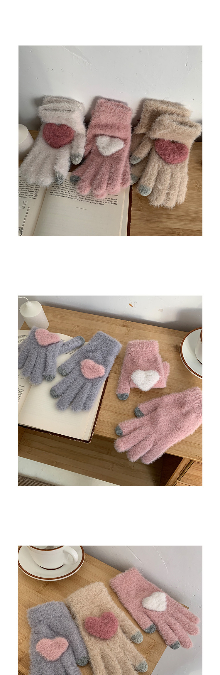 软糯兔毛灰色针织毛线五指加厚保暖手套女冬季骑行防寒防风毛茸茸